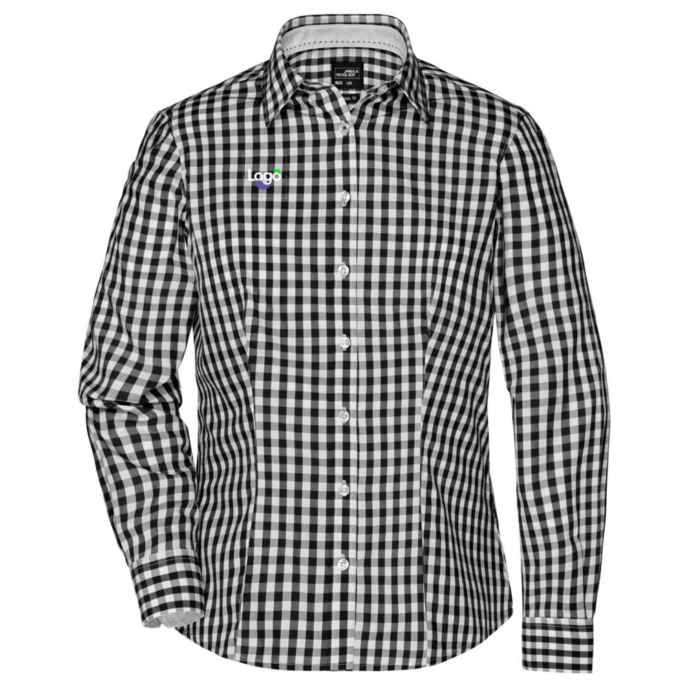 JN616 - Ladies´ checked blouse Chemise coton jn616 personnalisé - black/white