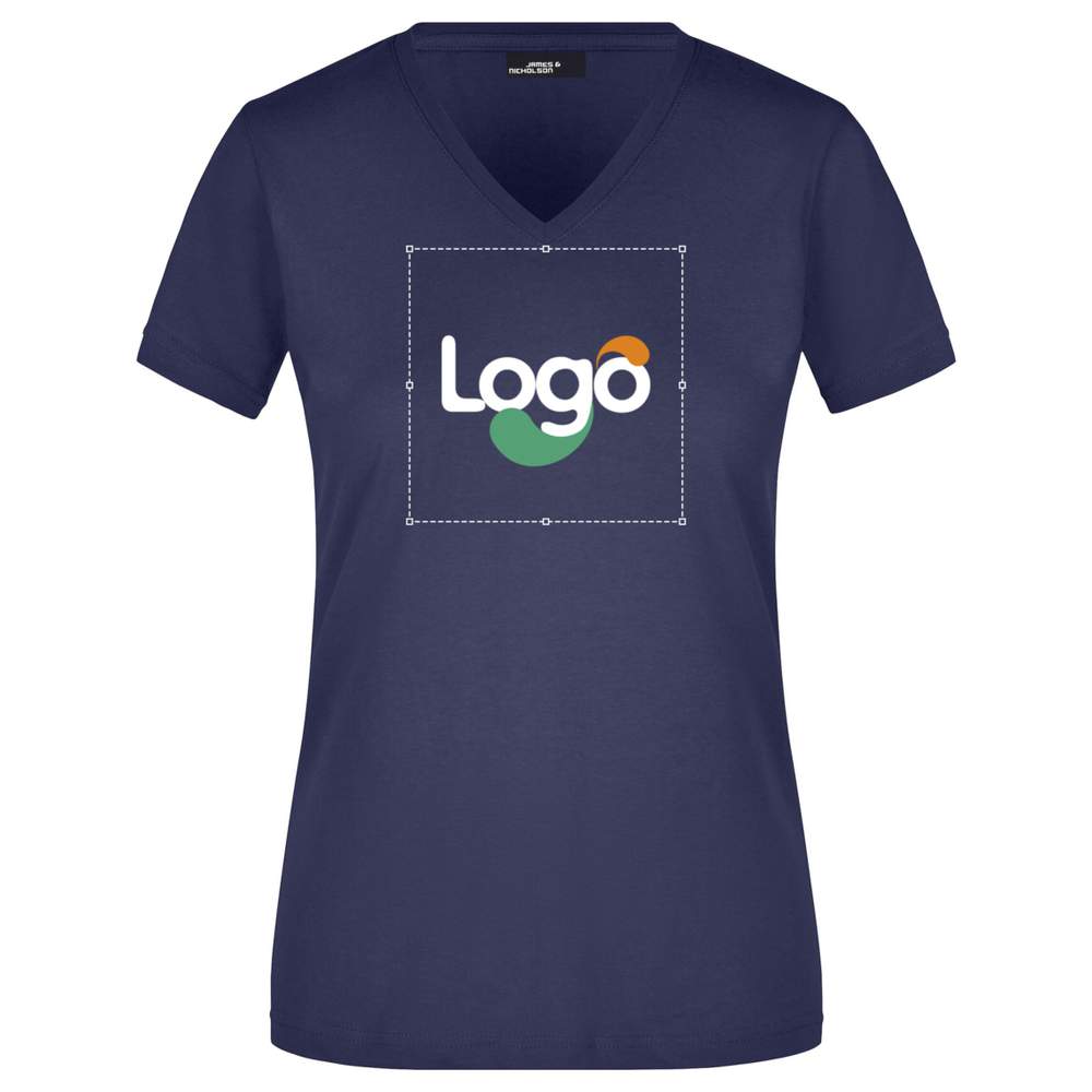 Ladies´ slim fit v-t Tee shirt jn972 personnalisation - Navy