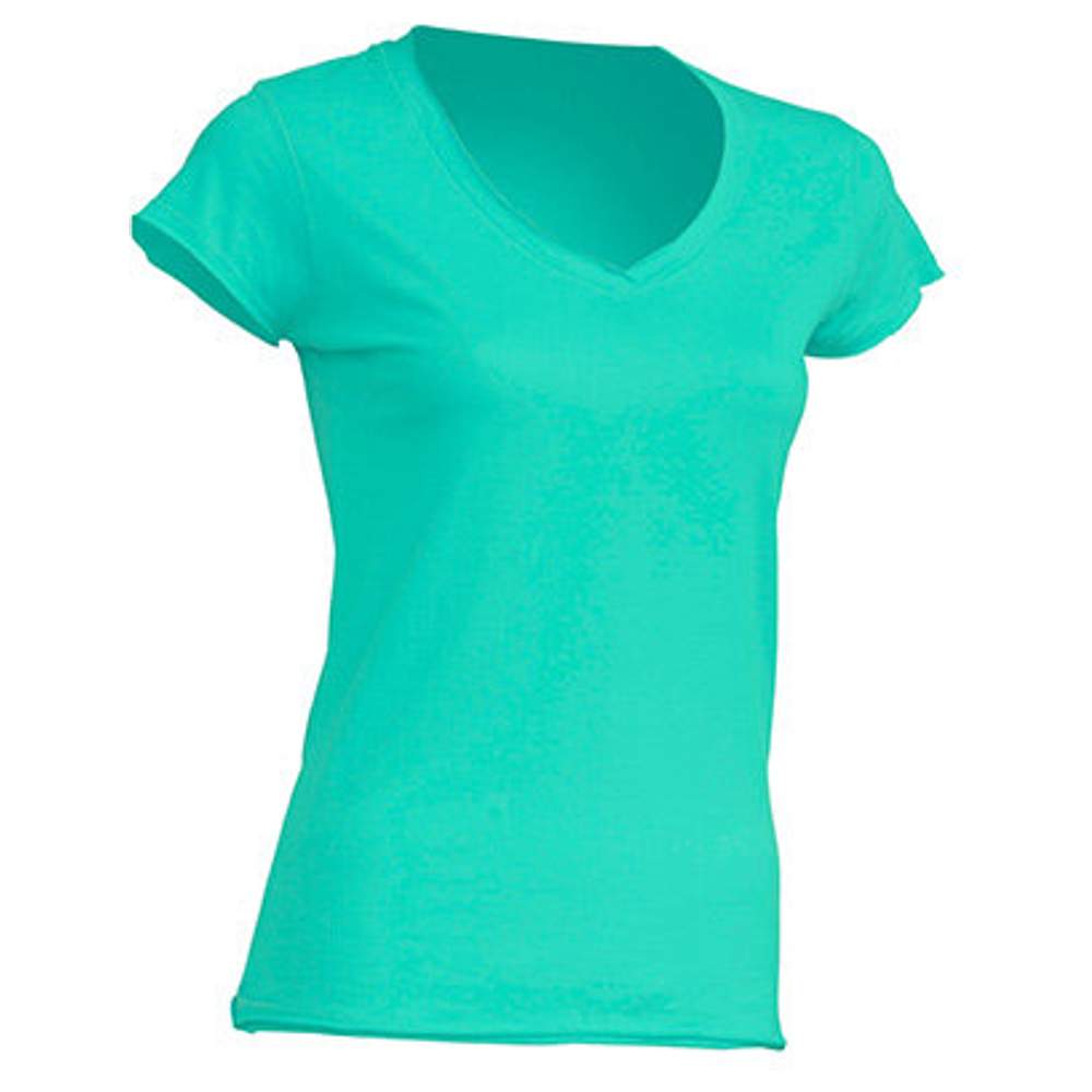 Tee shirt femme, col V, confectionné en 100% coton. Ce modèle présente une absence de couture et de finitions au niveau de la taille et des manches. Il offre un confort simple et une coupe basique pour un usage quotidien. Ce tee shirt est conçu pour un style décontracté et une facilité d'entretien.