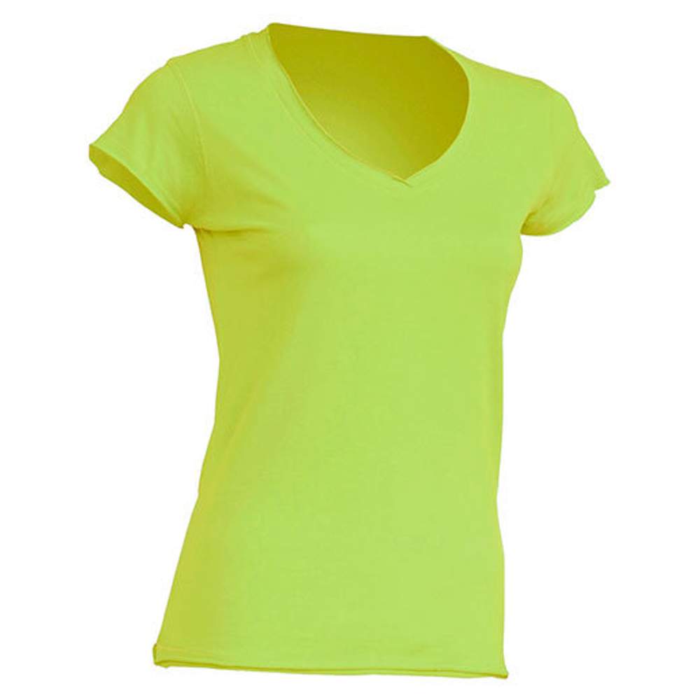 Tee shirt femme, col V, confectionné en 100% coton. Ce modèle présente une absence de couture et de finitions au niveau de la taille et des manches. Il offre un confort simple et une coupe basique pour un usage quotidien. Ce tee shirt est conçu pour un style décontracté et une facilité d'entretien.