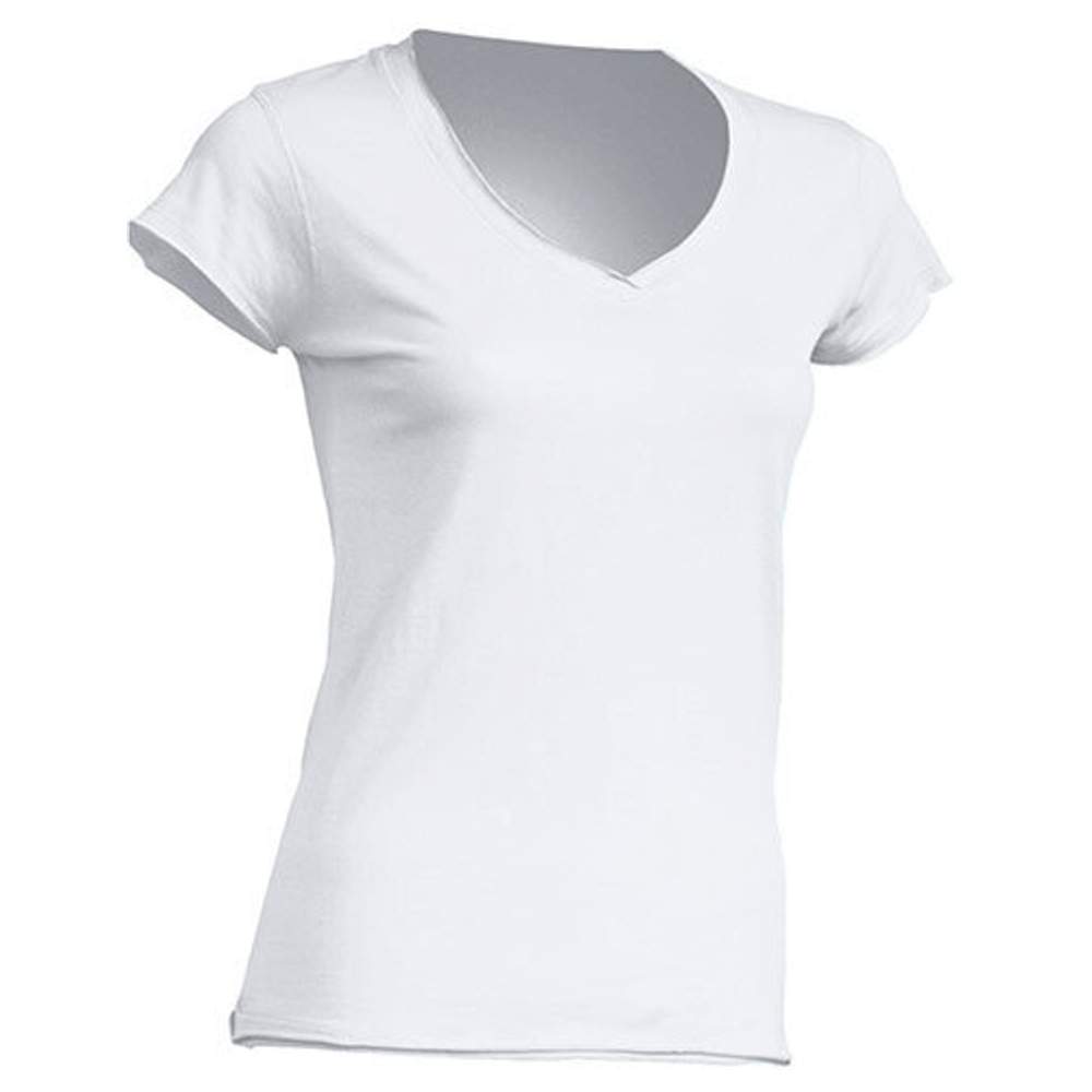 Tee shirt femme, col V, confectionné en 100% coton. Ce modèle présente une absence de couture et de finitions au niveau de la taille et des manches. Il offre un confort simple et une coupe basique pour un usage quotidien. Ce tee shirt est conçu pour un style décontracté et une facilité d'entretien.