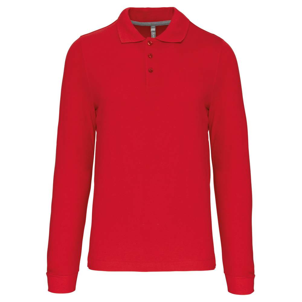 Polo manches longues homme en coton piqué maille, offrant confort et style. Ce polo présente un col en bord-côte, une patte de boutonnage 3 boutons et des poignets en bord-côte pour un ajustement optimal. La finition double aiguille au bas du vêtement assure une durabilité accrue.