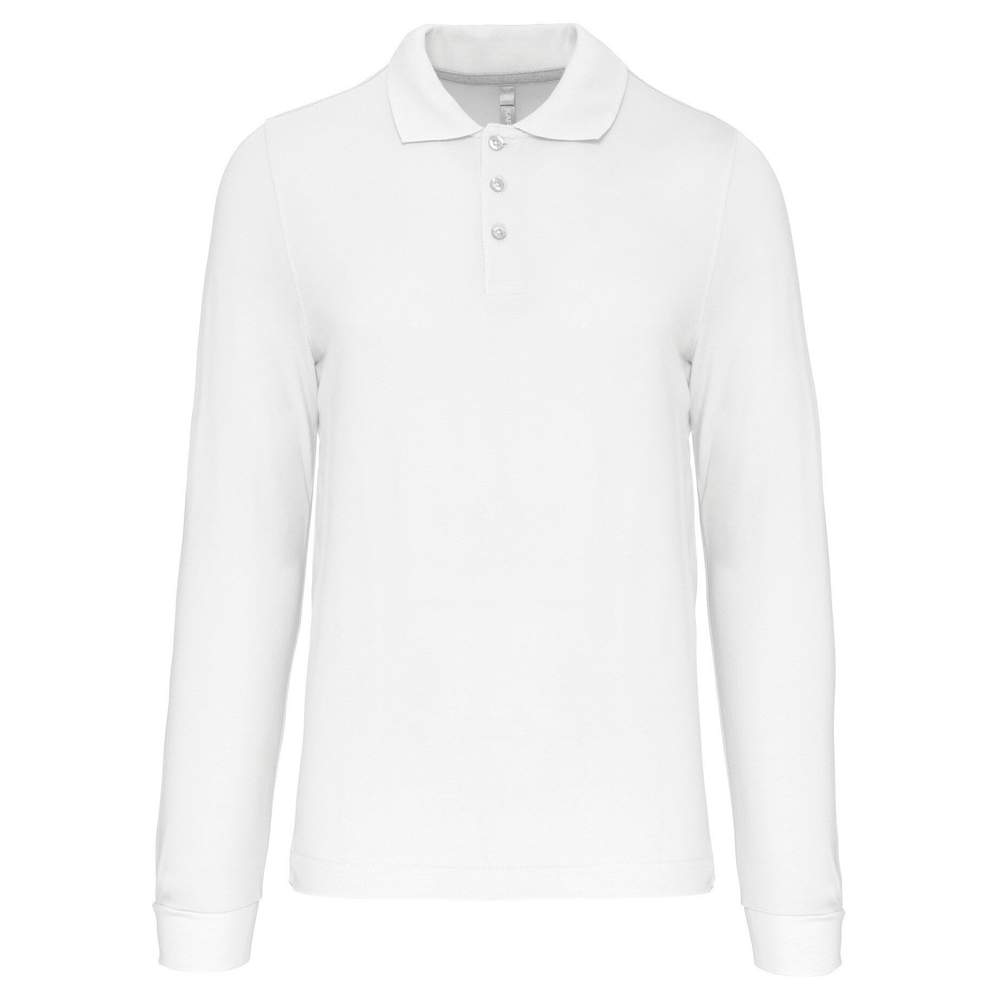 Polo manches longues homme en coton piqué maille, offrant confort et style. Ce polo présente un col en bord-côte, une patte de boutonnage 3 boutons et des poignets en bord-côte pour un ajustement optimal. La finition double aiguille au bas du vêtement assure une durabilité accrue.