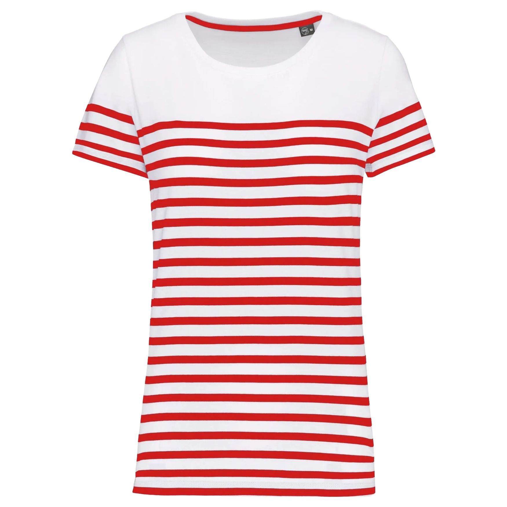 T-shirt marin col rond bio femme k3034 - White red stripe