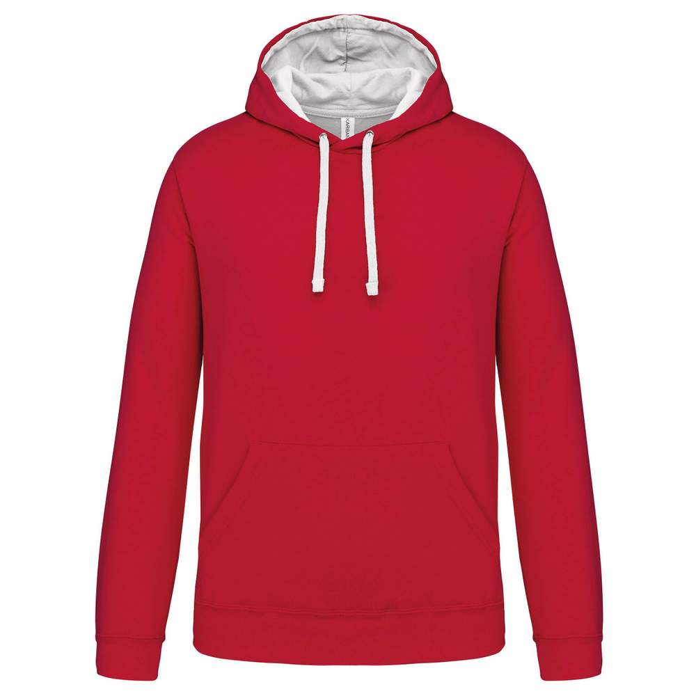 Sweat-shirt capuche femme contrastée, confectionné en 80% coton peigné et 20% polyester. Il présente une construction en molleton gratté pour un confort accru. Ce modèle est équipé d'une poche kangourou pratique et d'un passe-fil écouteurs intégré. Les finitions incluent des bord-côtes aux bas des manches et à l'ourlet du vêtement, ainsi qu'une capuche doublée et contrastée avec cordon de serrage.