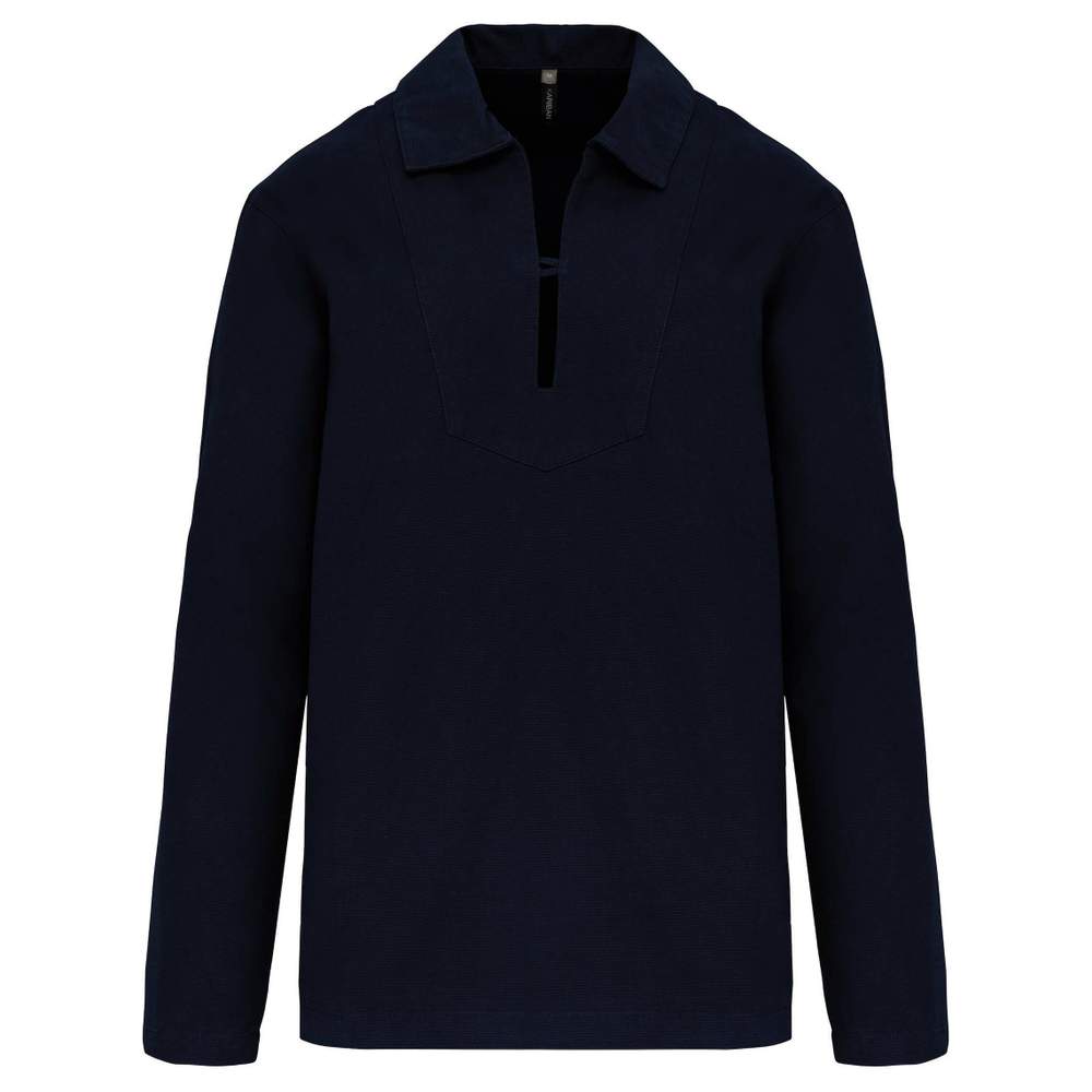 Vareuse confectionnée en 100% coton canvas. Ce modèle présente une grande poche intérieure, des fentes latérales et une ouverture fermée par un bouton. Un traitement spécial a été appliqué pour lui conférer un aspect volontairement vieilli, ce qui implique des variations de couleurs et rend chaque pièce unique.