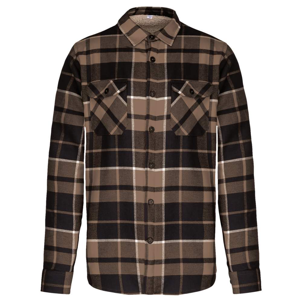 Surchemise à carreaux doublée sherpa k579 - Camel black checked