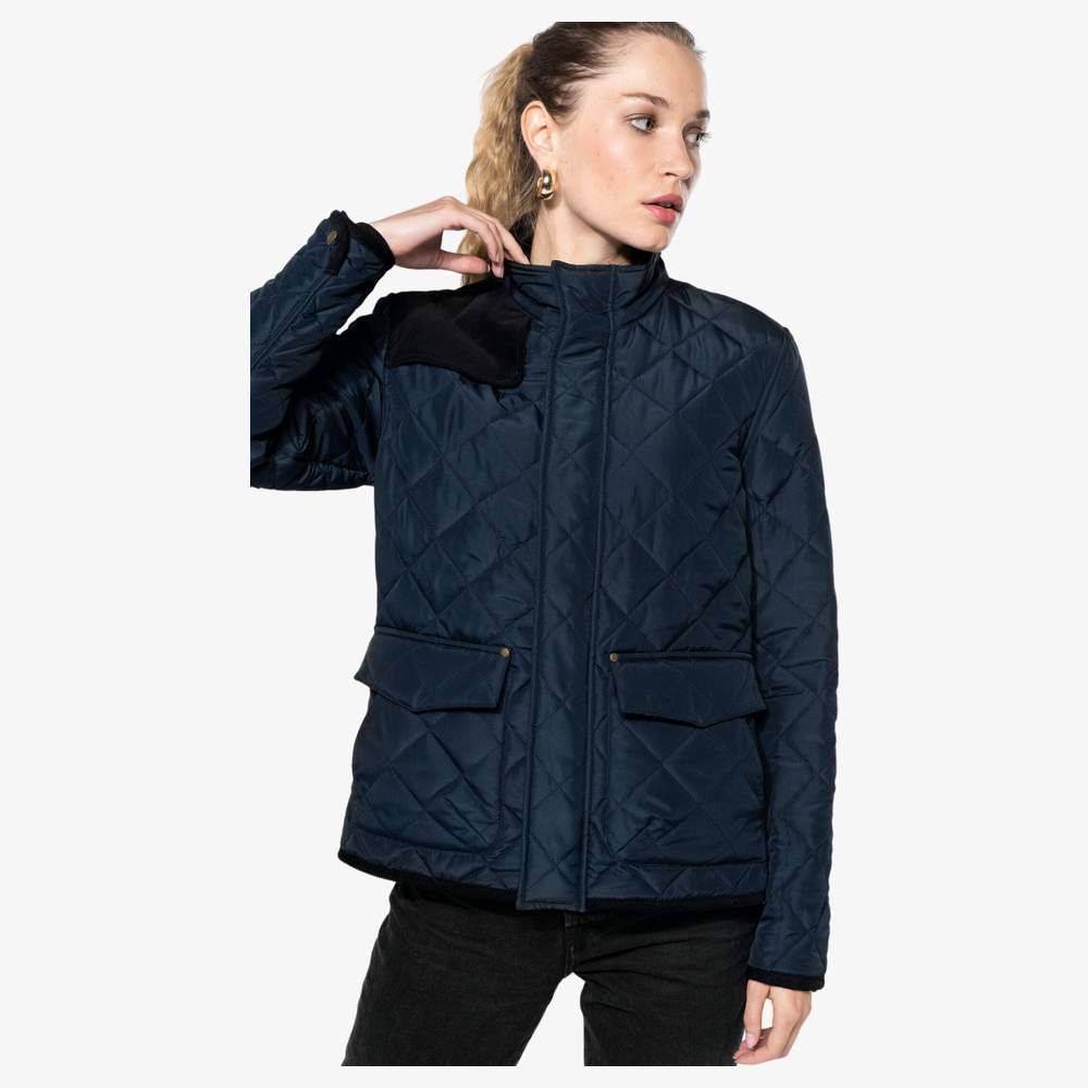 Cette veste matelassée pour femme offre une coupe classique et confortable. Elle est conçue avec un extérieur en polyester pongé et une doublure en polyester taffetas pour un confort optimal. La fermeture zippée est dissimulée sous une patte pressionnée, offrant un look épuré. Elle dispose de deux poches doubles à l'avant avec rabat pressionné et d'une poche intérieure pour ranger vos effets personnels. Des empiècements pressionnés sur les épaules ajoutent une touche de style. Les finitions en velours côtelé sur les bas des manches, le bas du vêtement, les coudières et l'intérieur du col offrent un confort supplémentaire et un look soigné. Les fentes d'aisance pressionnées au bas du dos permettent une plus grande liberté de mouvement.