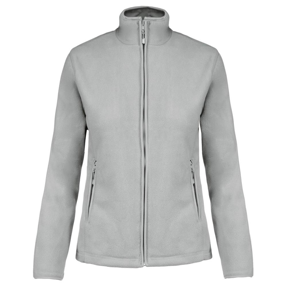 Veste polaire femme KARIBAN Maureen, confectionnée en micropolaire 100% polyester. Elle offre une coupe cintrée flatteuse et se ferme grâce à une fermeture zippée. Elle dispose de deux poches zippées pratiques pour ranger vos effets personnels. Les finitions soignées incluent un biais de finition au col, aux poignets et le long du zip.