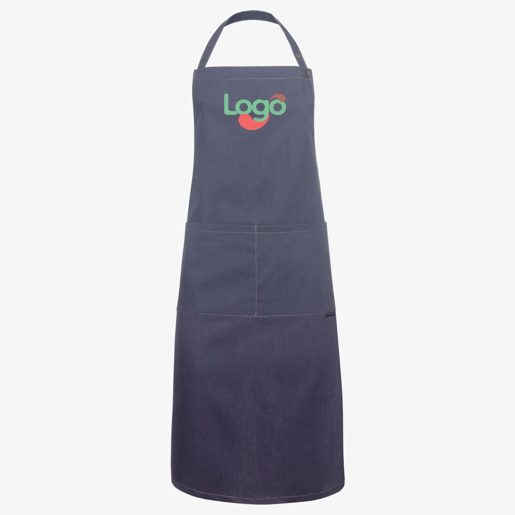 Le tablier à bavette jeans-style présente une composition mixte polyester et coton qui combine résistance et confort. Il est équipé de surpiqûres contrastées et de lanières ajustables par boutons-pression. La poche plaquée est divisée en deux compartiments pour un rangement organisé.