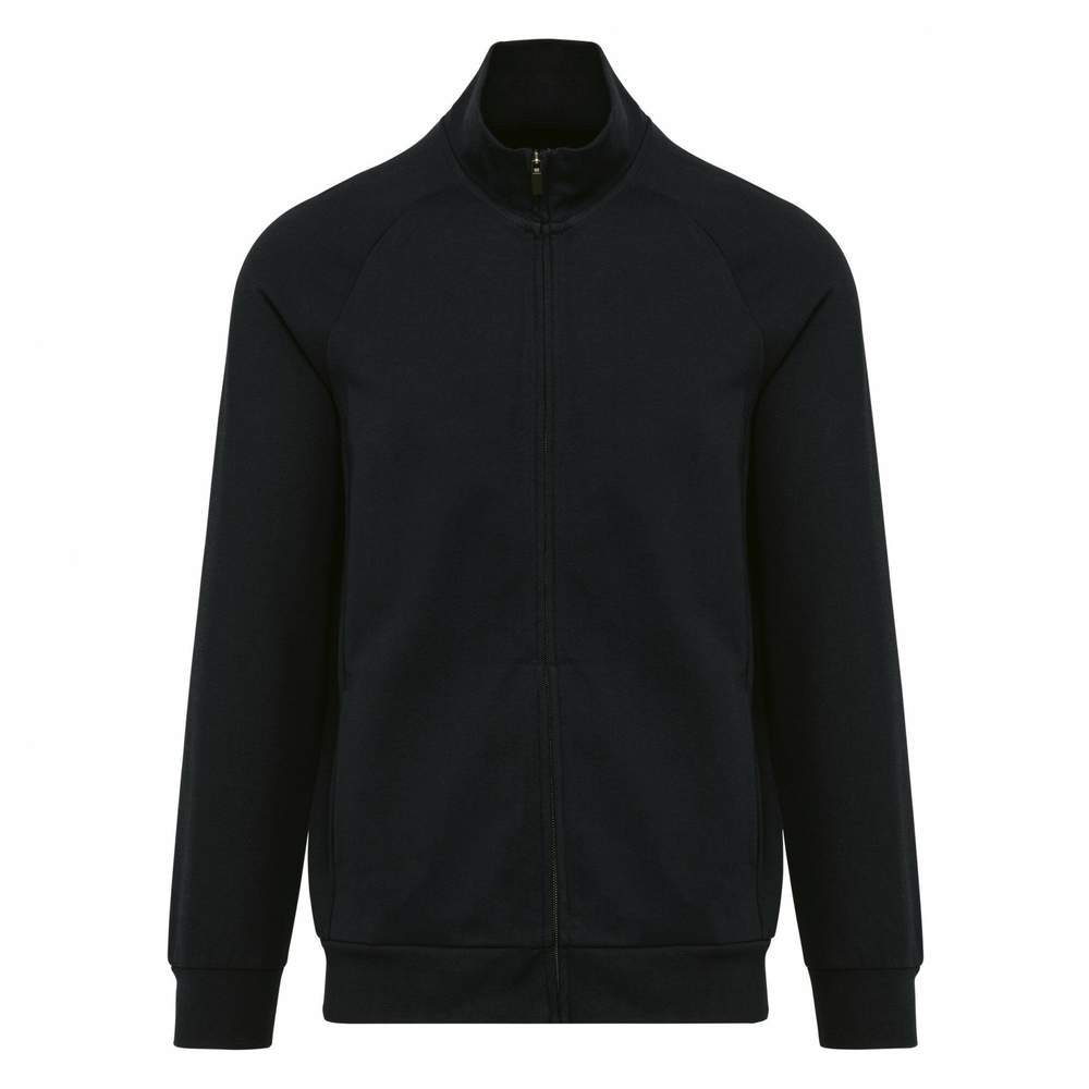 Veste zippée pour homme, conçue en coton peigné pour un confort optimal. Le tissu interlock assure une bonne tenue et un aspect soigné. Un traitement LSI (Low Shrinkage Interlock) est appliqué pour limiter le rétrécissement après lavage. La veste présente des surpiqûres au col et une bande de propreté sur l'encolure intérieure pour renforcer la durabilité et le confort. Elle est dotée d'un zip en nylon ton sur ton avec un zipper en métal et une finition de bande de propreté à l'intérieur. Les manches raglan offrent une plus grande liberté de mouvement. Des côtes 1x1 sont présentes aux poignets et à la base de la veste. Deux poches sont intégrées dans la couture de l'empiècement. La veste ne comporte pas d'étiquette de marque visible, mais est équipée d'une puce de taille pour faciliter l'identification.