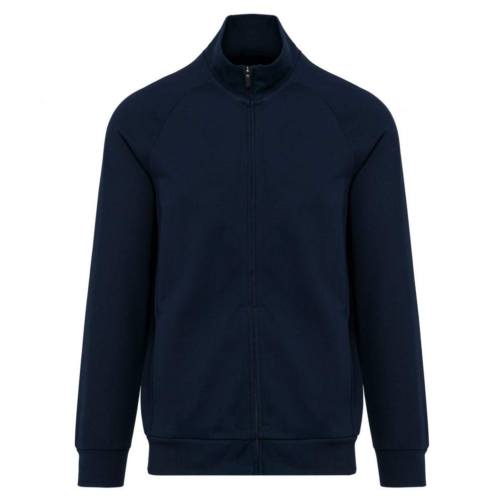 Veste zippée pour homme, conçue en coton peigné pour un confort optimal. Le tissu interlock assure une bonne tenue et un aspect soigné. Un traitement LSI (Low Shrinkage Interlock) est appliqué pour limiter le rétrécissement après lavage. La veste présente des surpiqûres au col et une bande de propreté sur l'encolure intérieure pour renforcer la durabilité et le confort. Elle est dotée d'un zip en nylon ton sur ton avec un zipper en métal et une finition de bande de propreté à l'intérieur. Les manches raglan offrent une plus grande liberté de mouvement. Des côtes 1x1 sont présentes aux poignets et à la base de la veste. Deux poches sont intégrées dans la couture de l'empiècement. La veste ne comporte pas d'étiquette de marque visible, mais est équipée d'une puce de taille pour faciliter l'identification.