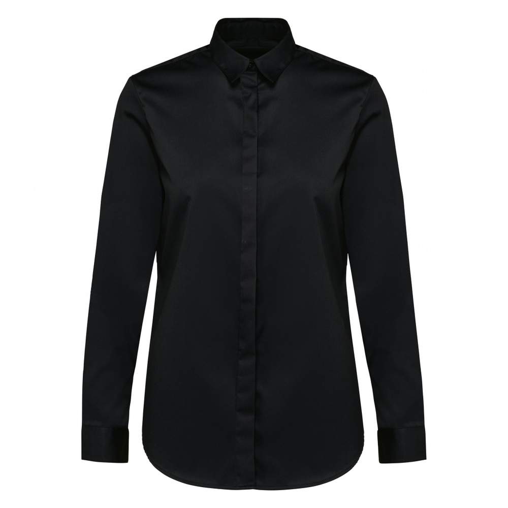 Chemise à manches longues pour femme, confectionnée en tissu twill 100% coton. Elle offre un confort optimal et une bonne résistance. Son traitement Easy care facilite l'entretien. Elle présente un empiècement haut du dos et une patte de boutonnage invisible. Les boutons sont en nacre et les poignées comportent 2 boutons à angles arrondis. L'absence d'étiquette de marque est compensée par une étiquette de taille discrète.