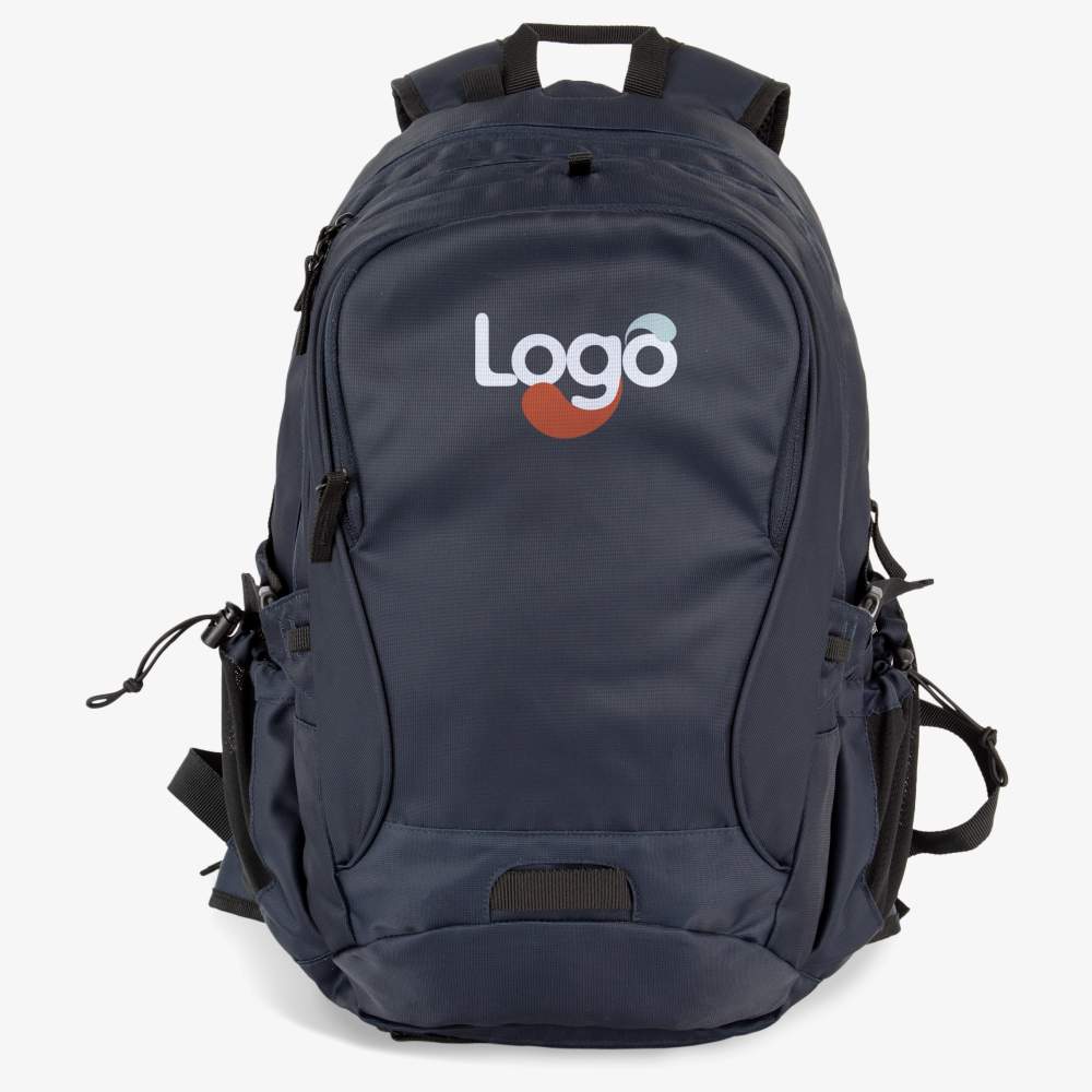 Sac à dos 100% polyester, style urbain et adapté aux loisirs. Grand compartiment principal avec un espace de rangement pour ordinateur jusqu'à 15''. Large poche frontale. Compartiment intermédiaire. Filet porte casque amovible qui se replie dans la poche zippée prévue à cet effet sous le sac. Sangles de compression latérale et ceinture ventrale pour un meilleur maintien. Poches côté en filet élastique avec cordon de serrage. Bretelles ergonomiques et dos respirant. Dimensions : 33 x 20 x 50 cm. Capacité : 35 litres. Composition : 100% polyester. Ce sac à dos offre la possibilité d'une personnalisation en broderie pour afficher votre logo ou votre visuel.
