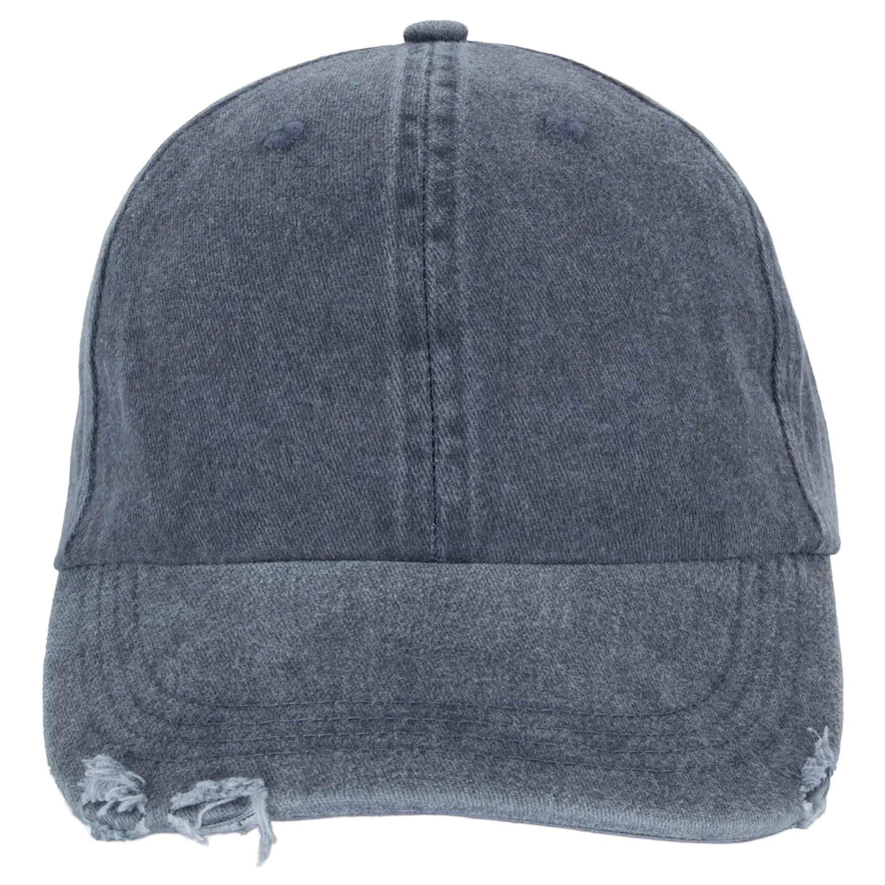La casquette vintage effet déchiré présente une construction en 6 panneaux avec un effet délavé. La disposition des découpes facilite la personnalisation. Composition 100% coton.