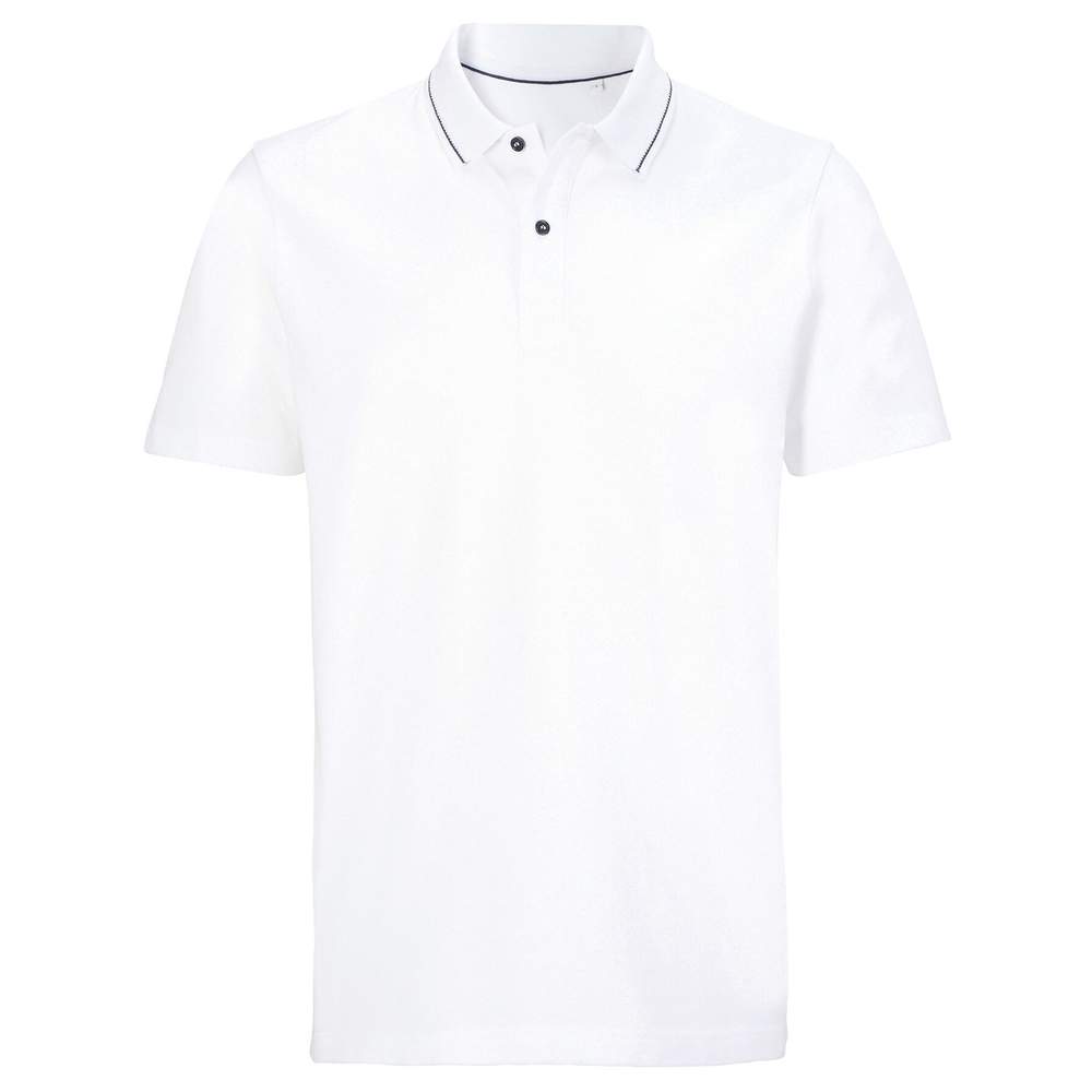 Polo piqué unisexe, conçu pour offrir confort et style. Ses manches courtes et sa finition ourlet simple assurent un look soigné. Le col en bord côte et la bande de propreté à l'encolure ajoutent une touche d'élégance. Le point zigzag et la rayure contrastée au col et dans l'encolure offrent un contraste subtil. La patte de boutonnage avec 2 boutons noirs assure une fermeture pratique. La coupe confortable et les manches ralongees garantissent un port agréable.