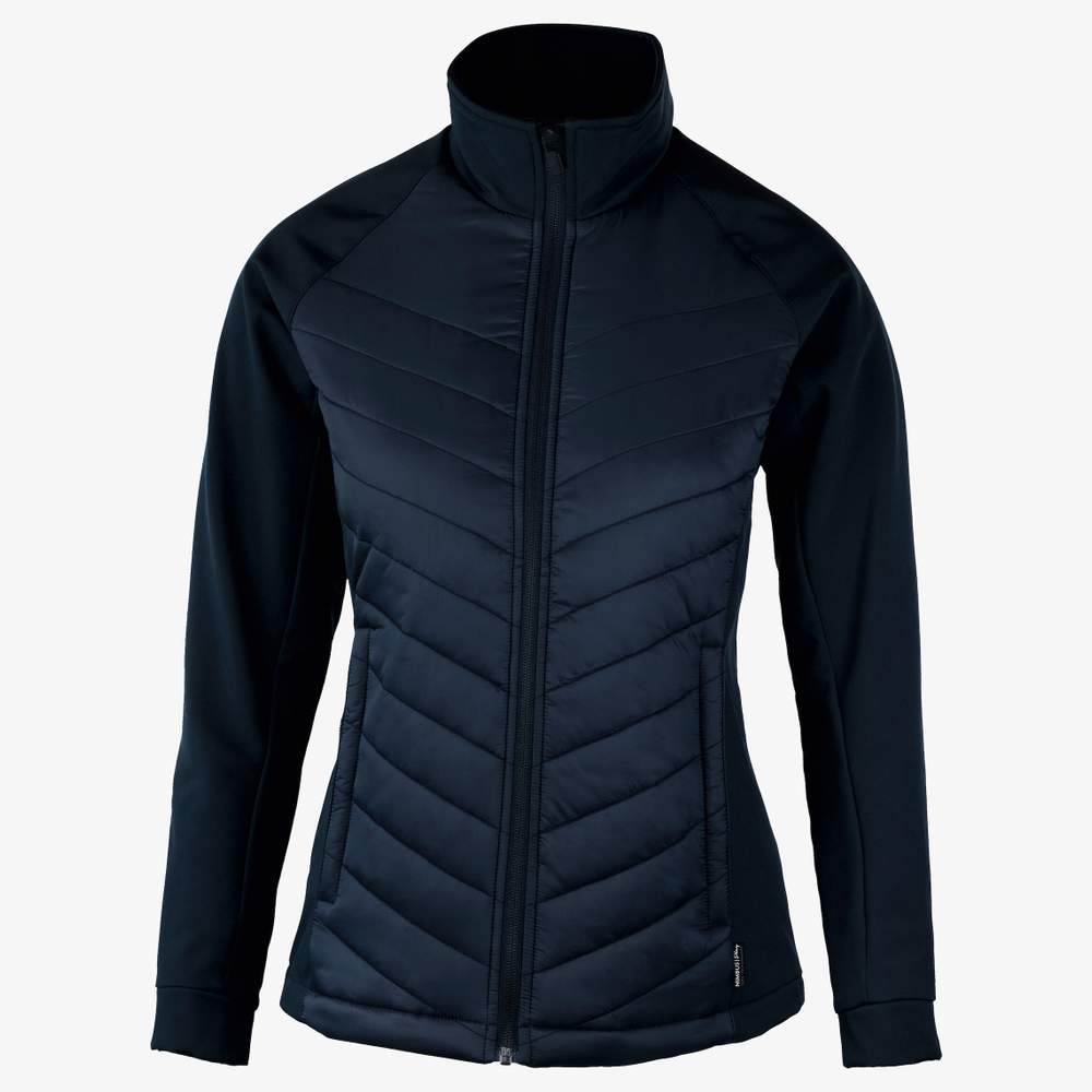 Bloomsdale pour femme est une veste hybride polyvalente avec une coupe sportive pensée pour être portée aussi bien au travail qu'en dehors. Aussi élégante que pratique, cette veste est un ajout indispensable à votre garde-robe. Les manches et les empiècements latéraux softshell lui apportent de la stabilité sans ajouter de poids ni d'encombrement excessifs tandis que l'isolation en fibres légères Sorona® Aura font de ce vêtement sportif une pièce de choix à porter au quotidien. Ce modèle est assez confortable pour être porté toute la journée, tout en étant suffisamment élégant pour s'inscrire dans la tendance athleisure. Fermeture zippée réversible avec tirette métallique portant le logo. Intérieur des poignets en jersey lycra extensible. Rembourrage matelassé Sorona® Aura. Tissu recyclé. Traitement déperlant.