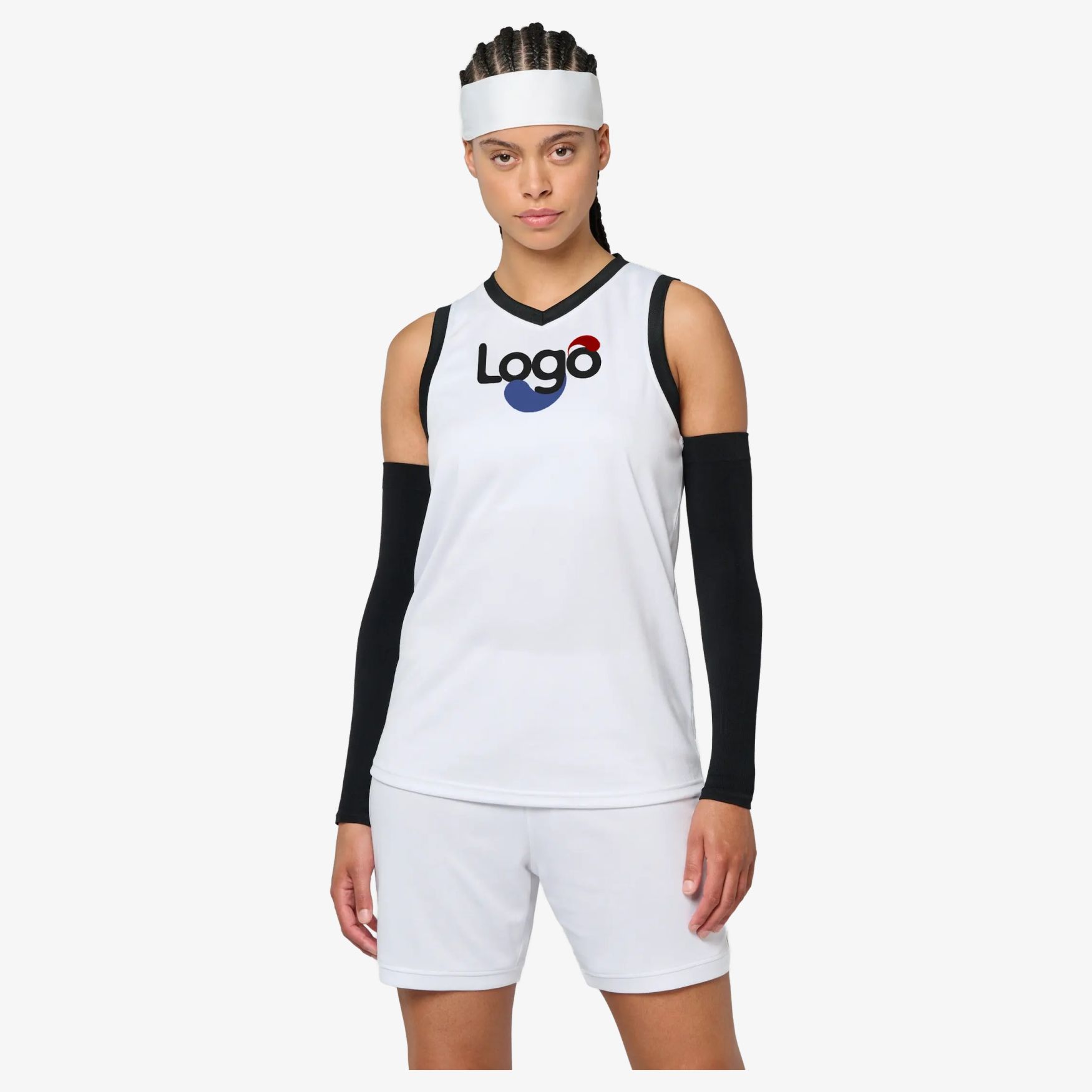 Le maillot basket-ball femme est un débardeur conçu pour la pratique sportive, avec tissu birdseye micro aéré et traitement antistatique. Encolure V et biais contrasté au col et aux emmanchures. Composition : 100% polyester birdseye.