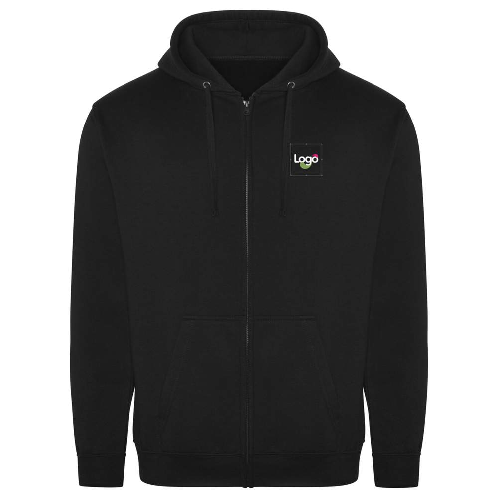 Sweat à capuche zippé pro confortable, doté d'un zip avec curseur YKK, d'une capuche entièrement doublée, de cordons de serrage unis, d'un intérieur en molleton gratté, de poignets et ourlet côtelés, et d'un intérieur en polaire brossé. Sa coupe moderne offre un confort optimal, tandis que ses poches frontales sont pratiques pour ranger vos effets personnels. Ce sweat est composé à 55% de coton et à 45% de polyester. Il est possible de le personnaliser en broderie pour un rendu unique et professionnel.