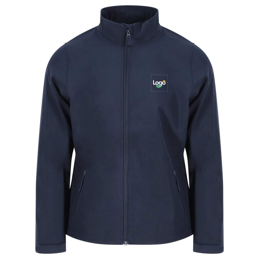 Softshell pour femme, conçu pour offrir confort et protection contre les éléments. Ce vêtement présente un devant à zip intégral, deux poches latérales zippées, une mentonnière et un rabat interne pour un confort accru. L'ourlet est doté d'un cordon de serrage élastique réglable. Ce modèle offre une protection efficace contre le vent et la pluie, tout en assurant une coupe moderne adaptée à la morphologie féminine. Composition : 97% polyester, 3% élasthanne. Possibilité de personnalisation en broderie pour un look unique.