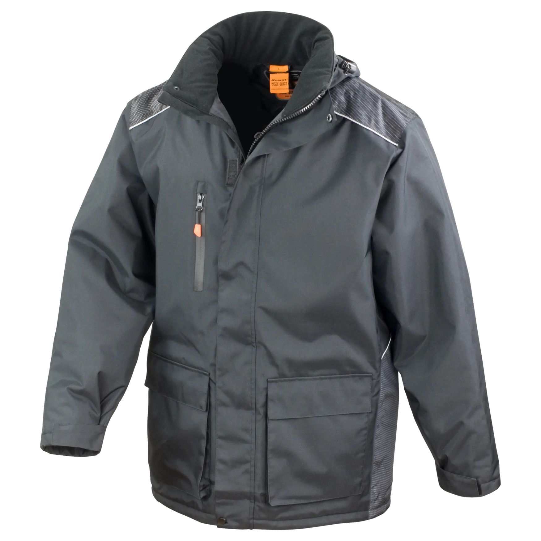 Le Vostex long coat est un coupe-vent long et étanche, conçu pour être porté par-dessus une tenue. Imperméabilité annoncée à 2000 mm et coutures soudées. Capuche ajustable amovible, col doublé, poches multiples et éléments réfléchissants. Personnalisation par logo possible.