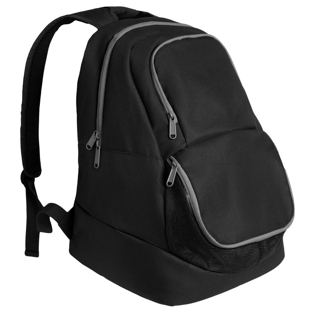 Sac à dos de sport avec un design ergonomique. Double bandoulière renforcée et anse spéciale. Dossier rembourré. Poche à chaussures à accès frontal. Une poche principale avec double tirette et une poche extérieure avant de plus petite capacité. Fermetures zippées grises contrastées. Détails en noir. Étiquette détachable. Résistant à l'eau. Capacité 38 L. Composition : 100% polyester 900D, 420 g/m². Ce sac à dos est personnalisable en broderie ou par impression de votre logo, pour une visibilité maximale de votre marque.