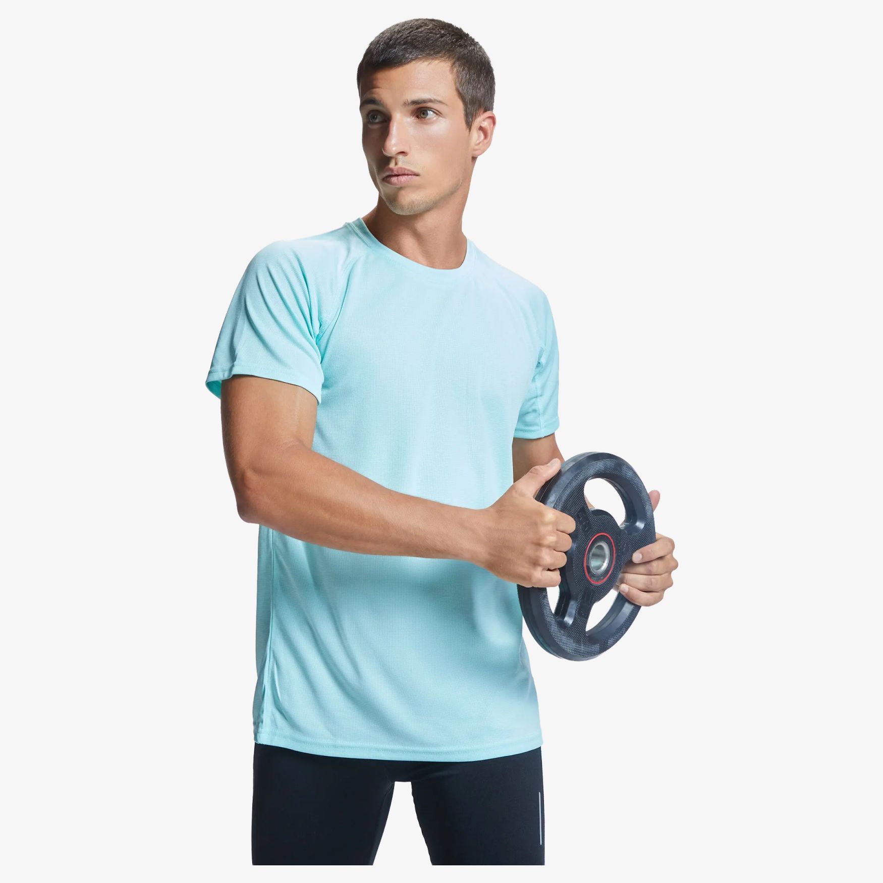 T-shirt technique manches courtes raglan. Col rond avec bande de propreté ton sur ton. Panneaux inférieurs sur les manches. Coutures ton sur ton sur les enmanchures et les panneaux de manches. Tissu CONTROL DRY. Disponible en tailles enfants. Étiquette détachable. Composition : 100% polyester, waffle interlock, 135 g/m².