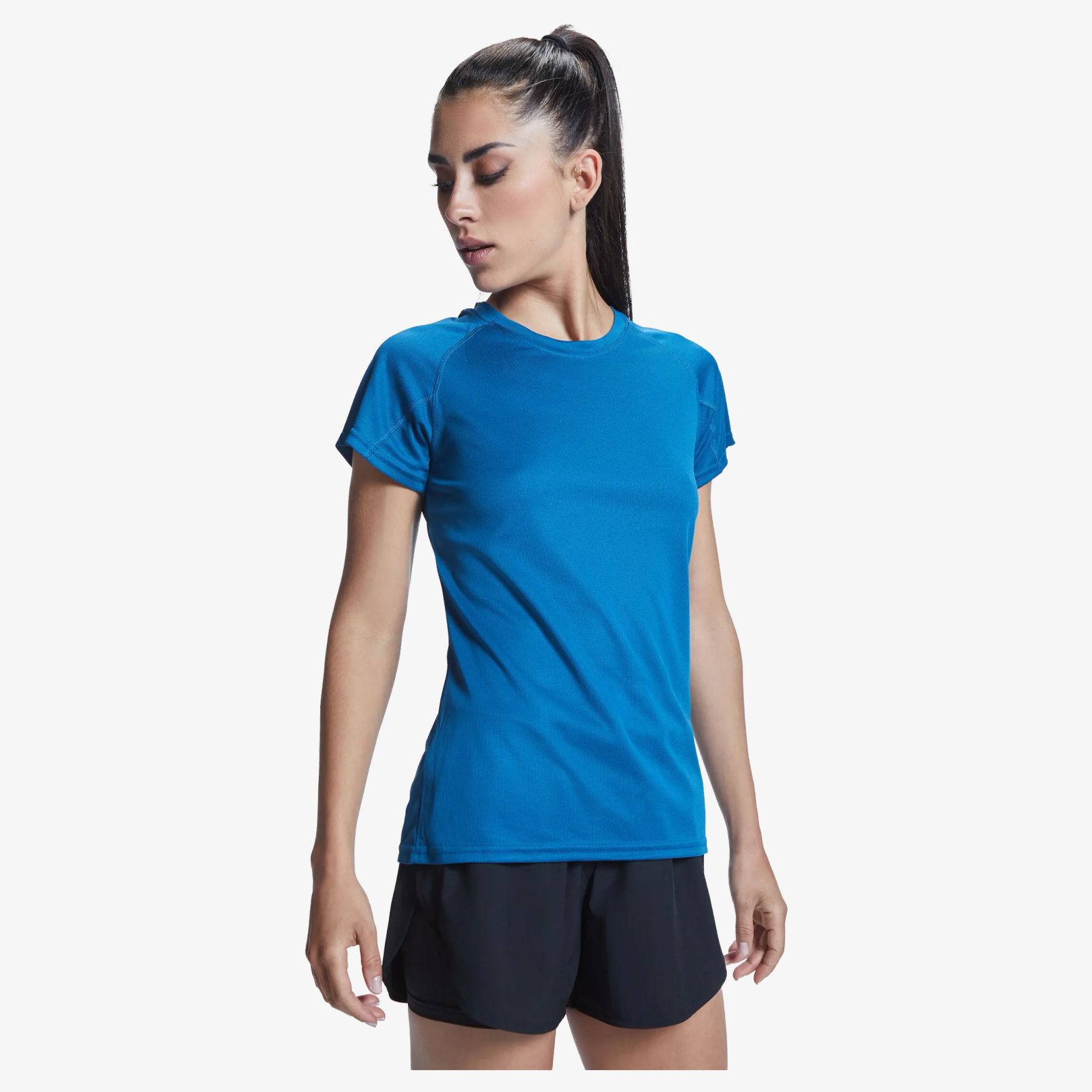 T-shirt technique manches courtes raglan pour femme. Col rond avec bande de propreté ton sur ton. Panneaux inférieurs sur les manches. Coutures ton sur ton sur les enmanchures et les panneaux de manches. Tissu CONTROL DRY. Étiquette détachable. Composition : 100% polyester, waffle interlock, 135 g/m².