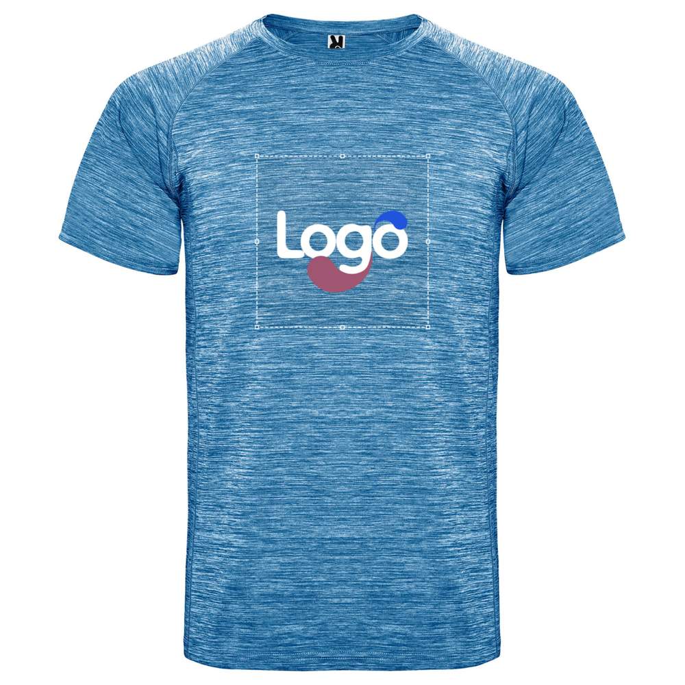 T-shirt technique en tissu polyester, manches courtes style raglan. Col rond. T-shirt avec chute du tissu, confortable et facilement adaptable au corps. Modèle respirant avec séchage facile. Étiquette détachable. Tissu technique. Spécial sublimation. Composition : 100 % polyester space dye.