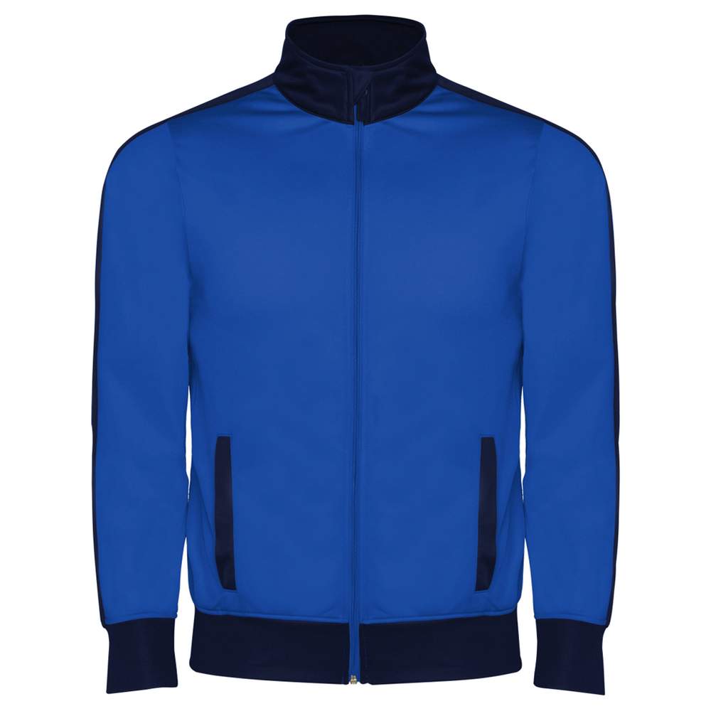 Survêtement deux pièces composé d'une veste et d'un pantalon. La veste présente un col montant avec protection de crémaillère, des poches frontales avec liserés contrastés, des poignets et une bande élastique à la taille contrastés en côte 1x1, ainsi qu'une fermeture centrale zippée avec bande de propreté intérieure. Le pantalon est doté d'une ceinture élastique et d'un cordon ajustable avec point arrière de sécurité, ainsi que de deux poches latérales avec liseré large. Tissu velouté confortable. Bas avec zip. Étiquette détachable.