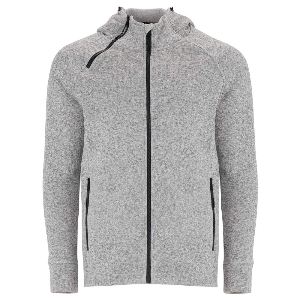 Veste en maille molleton avec capuche. Elle est dotée d'un zip injecté avec un curseur spécifique et d'une protection de menton. Le col montant est conçu avec un ajusteur et une bande de propreté intérieure. Un second zip décoratif facilite l'ouverture du col. La veste dispose de deux poches frontales zippées. Le bas du dos est plus long que le devant, avec des ajusteurs pour un meilleur ajustement. Elle est équipée d'une étiquette détachable.