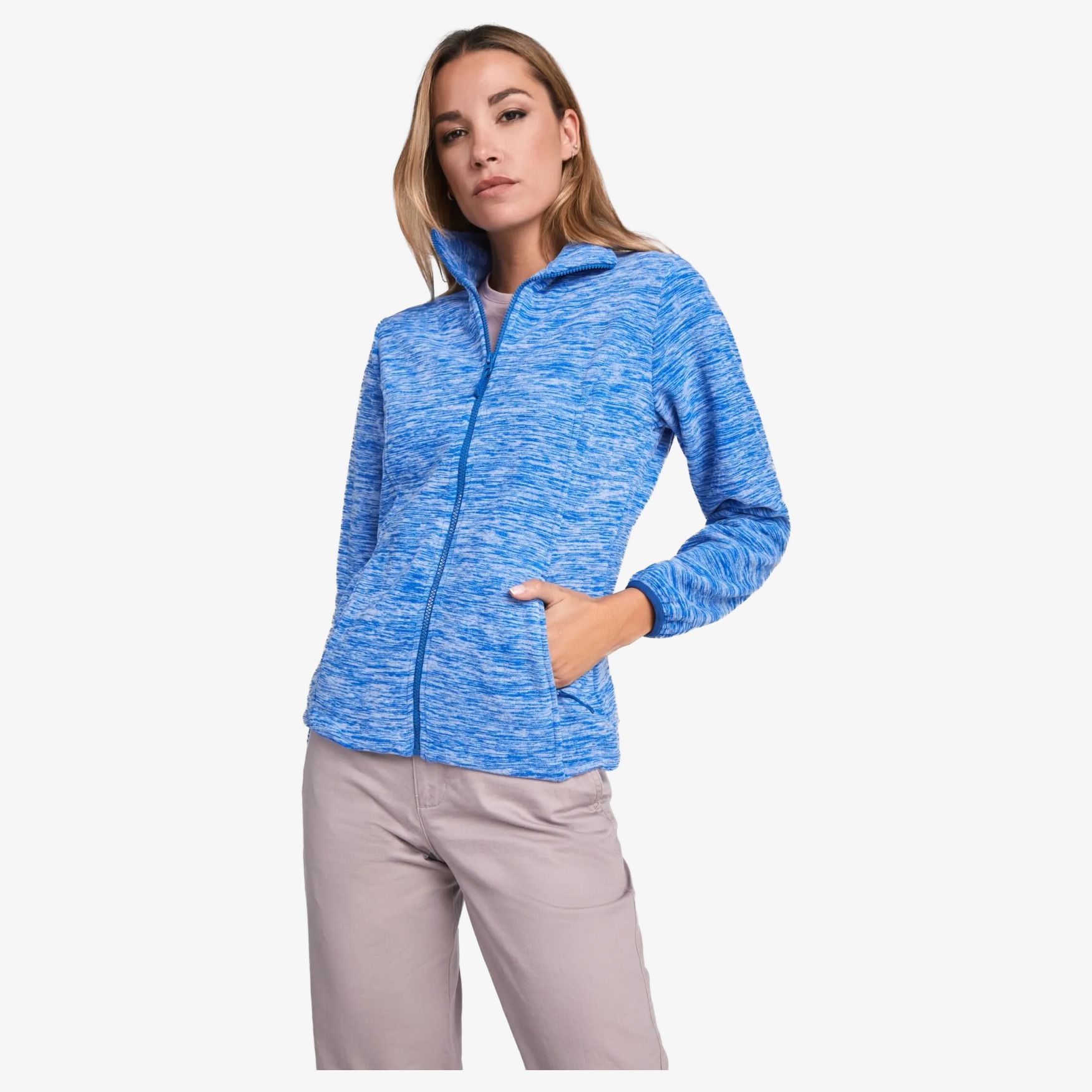 Veste polaire pour femme, col montant doublé et bande de propreté renforcée ton sur ton. Zip injecté ton sur ton avec le curseur. Poignets liserés élastiques. Coupe près du corps. Bas avec arrêts ajustables à l'intérieur. Étiquette détachable. Duo concept.
