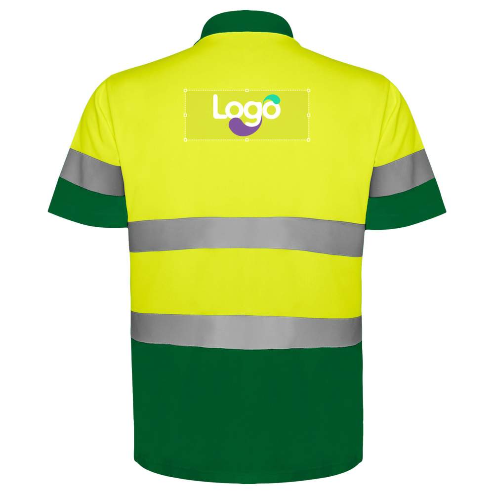 Polo technique manches courtes haute visibilité. Patte de boutonnage 3 boutons. Col et poignets en côte 1x1. Deux bandes réfléchissantes horizontales sur la poitrine et les manches. Tissu anti-accrochage. Certification CE selon les normes: EN ISO 13688:2013/A1:2021, EN ISO 20471:2013/A1:2017. Classe I: 55221 - 55223 - 52221 - 23221. Classe II: 221. Etiquettes détachable. Haute visibilité. Poche optionnelle. Composition : 100% polyester, maille piquée, 170 g/m². Ce polo technique haute visibilité est idéal pour améliorer la sécurité et l'image de votre entreprise. Personnalisation possible en broderie pour un résultat unique et professionnel.