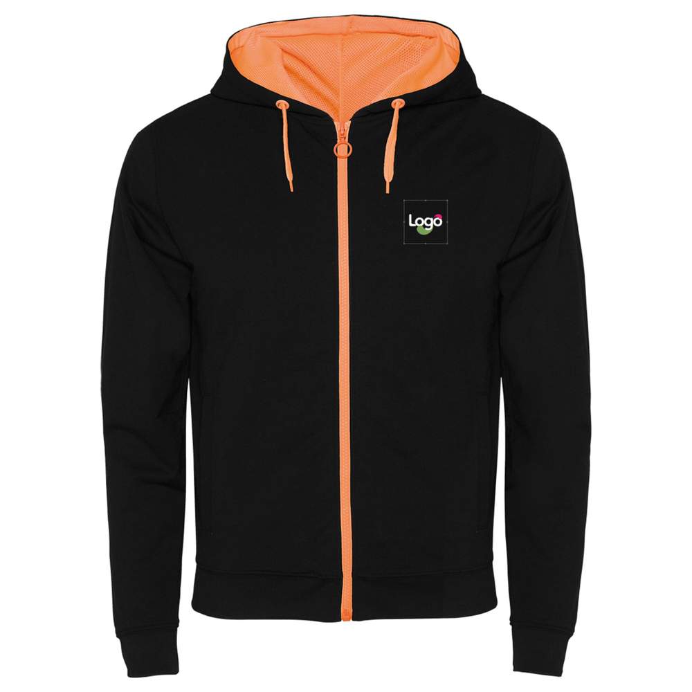 Veste sweat molletonnée coton polyester Fuji personnalisable avec votre visuel su1105 - Noir orange fluo