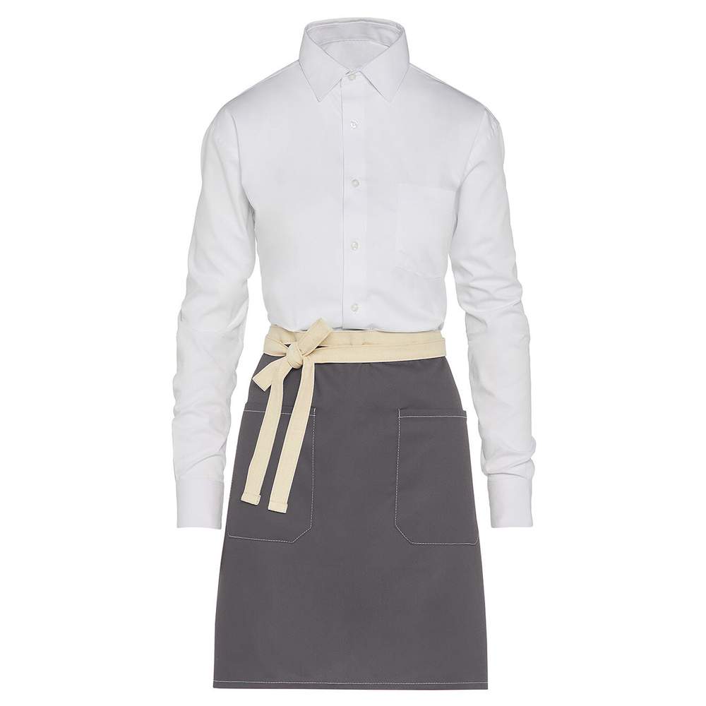 Ce tablier de bistrot en polycoton est conçu pour un usage professionnel. Il est disponible dans des coloris tendance et dispose d'attaches contrastées de couleur naturelle. Il est équipé de deux poches séparées pratiques avec une coupe design et des surpiqûres contrastées de couleur naturelle (chacune : 20 x 20 cm). Ses dimensions sont de 78 x 52 cm.