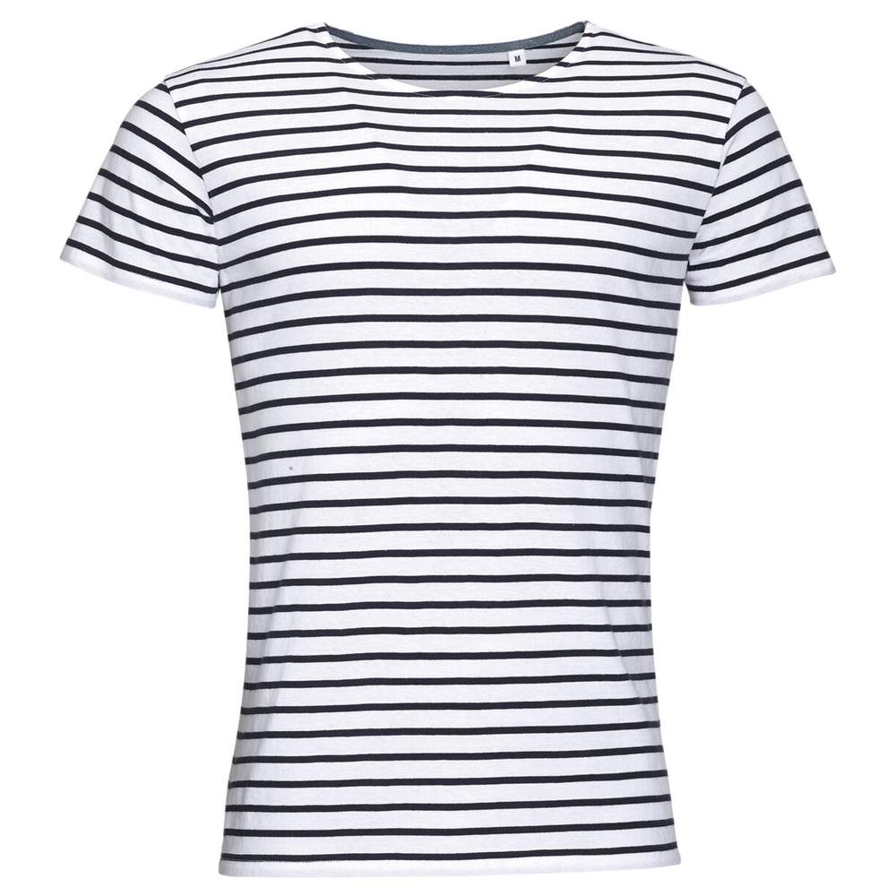 Ce tee-shirt homme rayé Miles men de SOL'S offre un confort optimal grâce à sa coupe ajustée et son col rond. Conçu pour un style décontracté, il est idéal pour toutes vos activités quotidiennes. Ses détails en chambray à l'intérieur du col ajoutent une touche d'élégance discrète. Ce tee-shirt est coupé cousu pour une meilleure solidité et un confort accru.