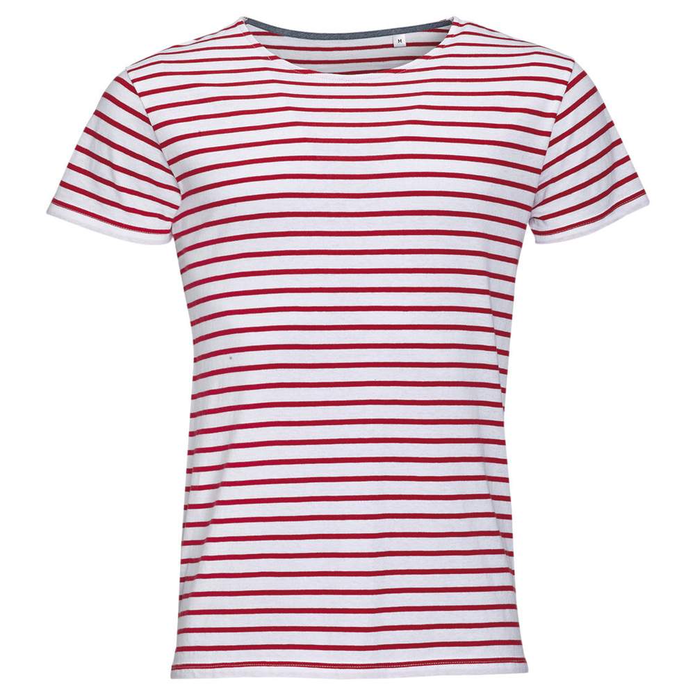 Ce tee-shirt homme rayé Miles men de SOL'S offre un confort optimal grâce à sa coupe ajustée et son col rond. Conçu pour un style décontracté, il est idéal pour toutes vos activités quotidiennes. Ses détails en chambray à l'intérieur du col ajoutent une touche d'élégance discrète. Ce tee-shirt est coupé cousu pour une meilleure solidité et un confort accru.