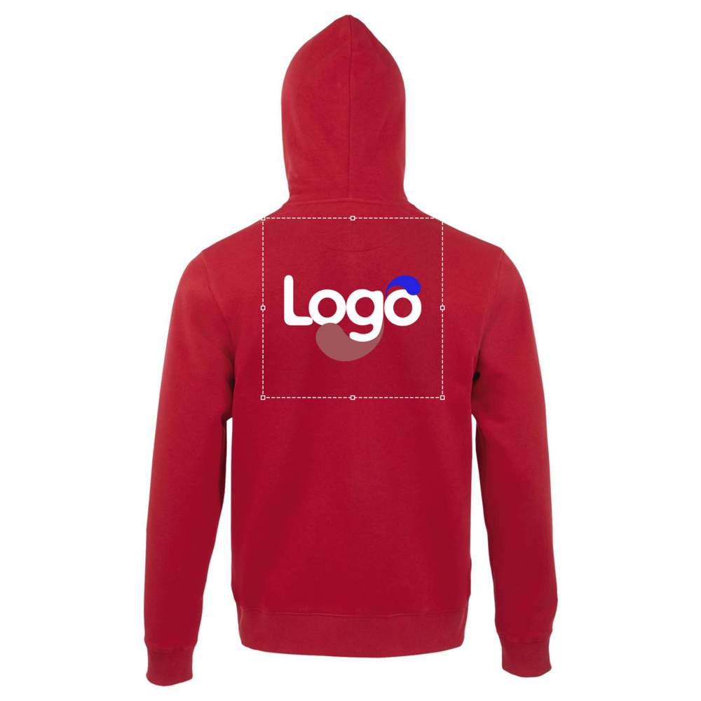 Veste zippée homme à capuche. Manches montées. 2 poches kangourou, coupé cousu. Capuche doublée avec cordon de serrage ton sur ton. Poignets et bas en bord côte 2x2. Demi-lune à l'intérieur du col. Bande de propreté intérieur col. 80% coton Ringspun 20% polyester. Intérieur gratté. Extérieur 100% coton. Possibilité de personnalisation en broderie ou avec votre logo.