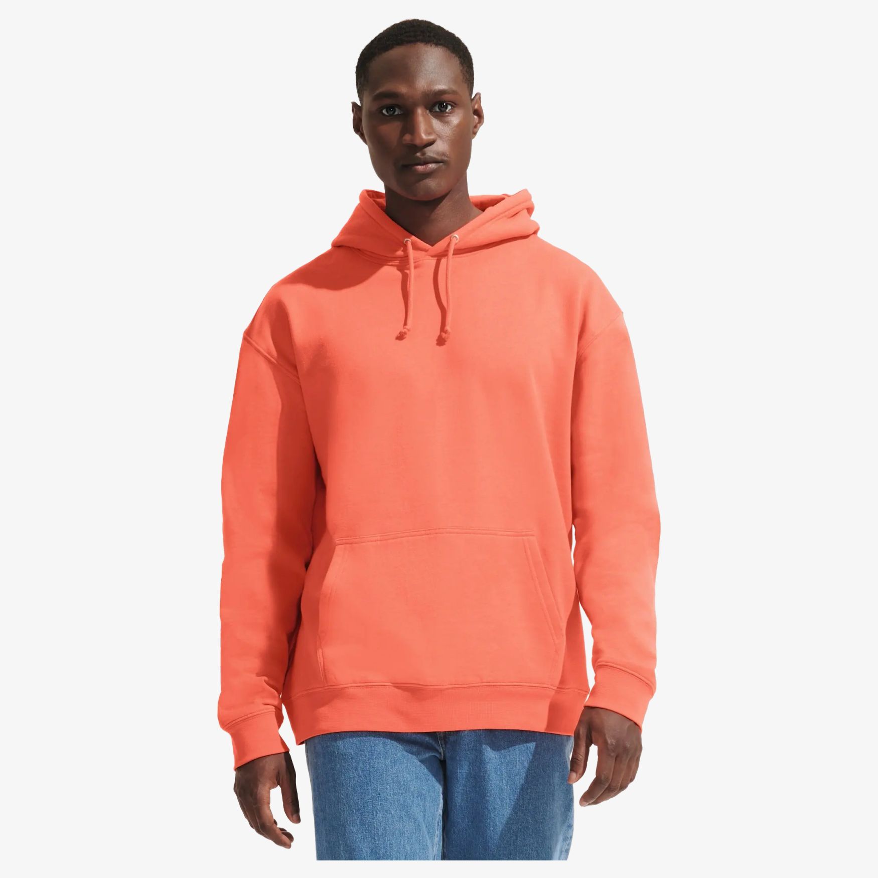 Sweat-shirt unisexe à capuche. Manches montées, coupé cousu. Bord côte 1x1 aux poignets et bas. Poche kangourou. Capuche doublée avec lacet ton sur ton et œillet en métal. Demi-lune et bande de propreté en jersey dans l'encolure.