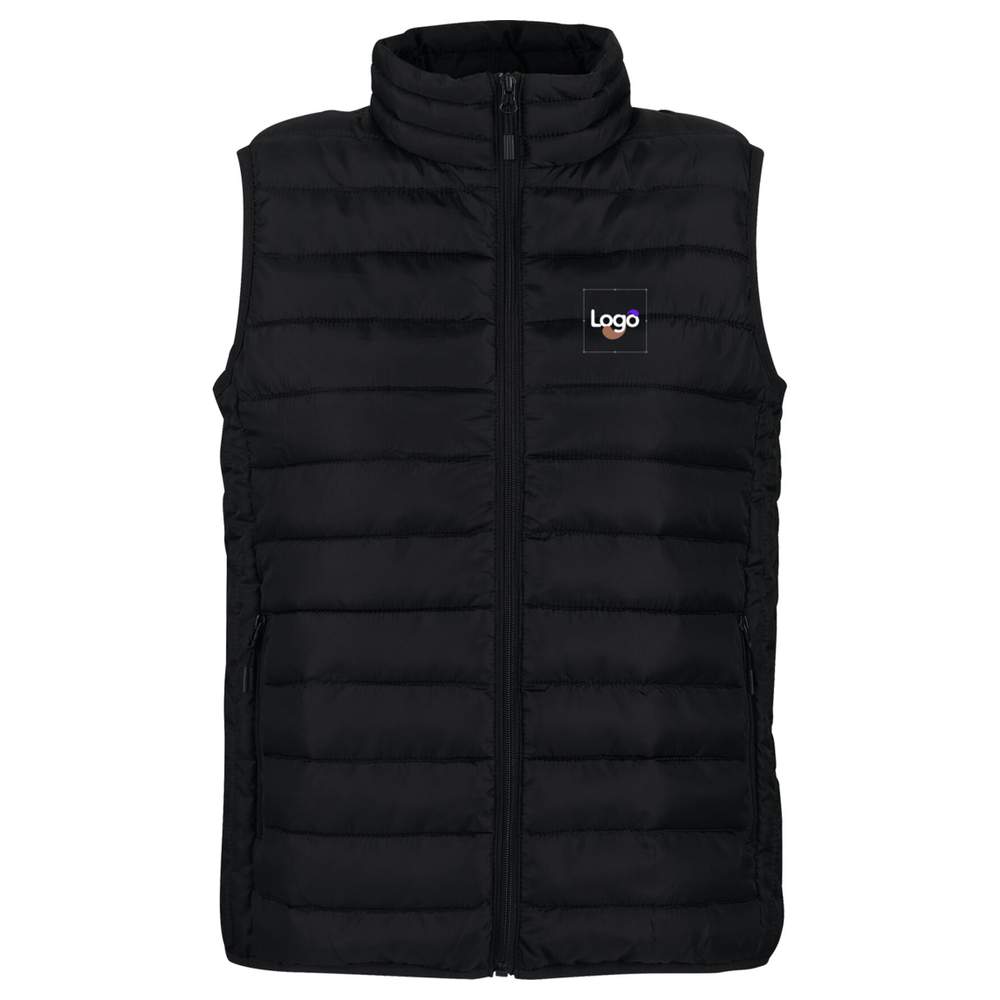 Doudoune légère sans manches pour femme. Ouverture principale et poches côté avec zip nylon ton sur ton. Curseurs en métal ton sur ton avec tire-zip fantaisie noir. Col montant. Bas de vêtement et emmanchures avec biais élastiqué ton sur ton. Sac de rangement. Composition : extérieur et doublure 100% polyester ; matelassage en duvet 100% polyester. Ce modèle offre la possibilité de personnalisation en broderie pour répondre à vos besoins spécifiques.