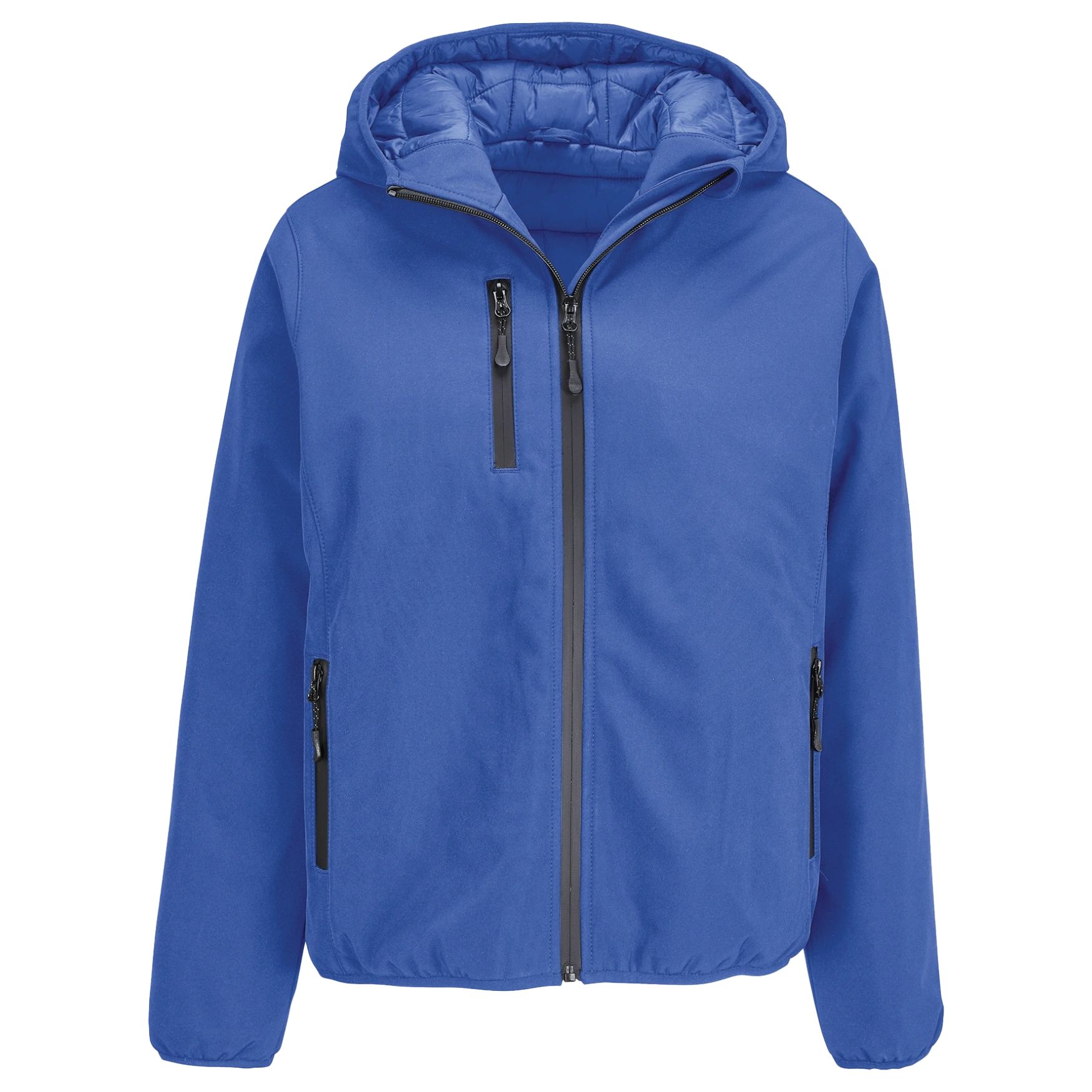 La softshell hiver Falcon Padded pour femme dispose d'une capuche avec ouverture élastiquée et d'une ouverture principale. Les poches latérales et poitrine sont équipées de zips nylon waterproof noirs. Trois poches intérieures complètent le rangement. Les poignets sont finis avec un biais élastiqué ton sur ton. La softshell est composée de trois couches avec un extérieur en 94% polyester recyclé et 6% élasthanne, une membrane imperméable respirante 5000 mm, une doublure 100% nylon et un matelassage 100% polyester recyclé.