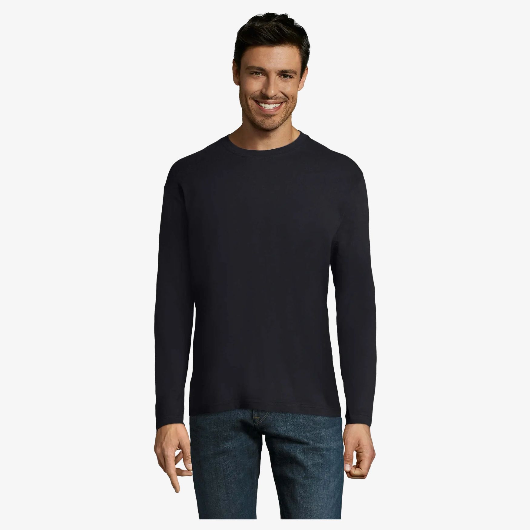 Tee-shirt homme col rond manches longues, confectionné en jersey 150, 100% coton semi-peigné. Il offre un confort optimal et une bonne tenue. Sa coupe tubulaire assure un aspect moderne et une agréable sensation sur la peau. Bande de propreté au col et col rond en bord côte élasthanne pour un maintien parfait.