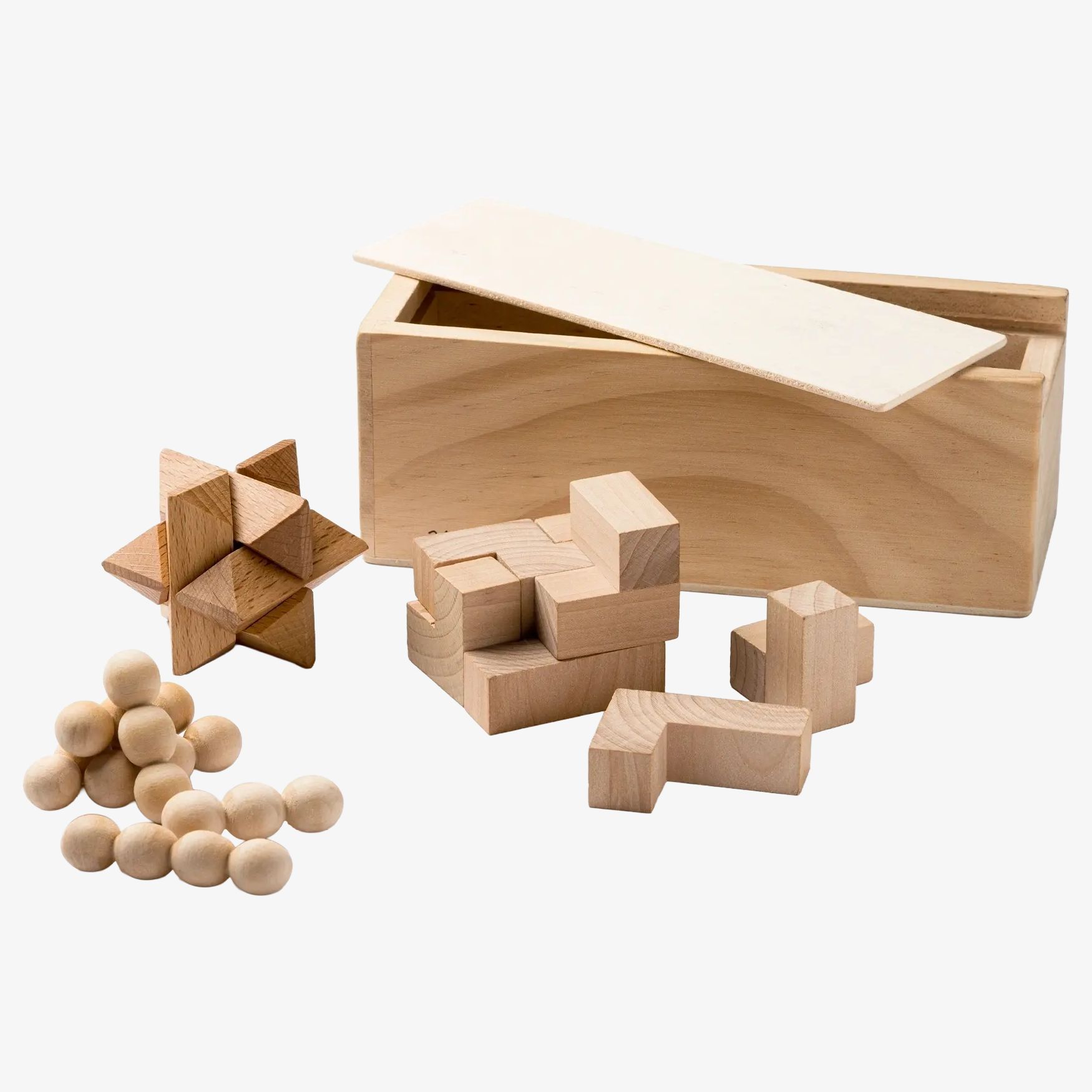 Le Rocks ensemble de 3 jeux d'adresse en bois naturel se range dans une boîte en bois avec compartiments et couvercle coulissant. Format compact pour le rangement et le transport.