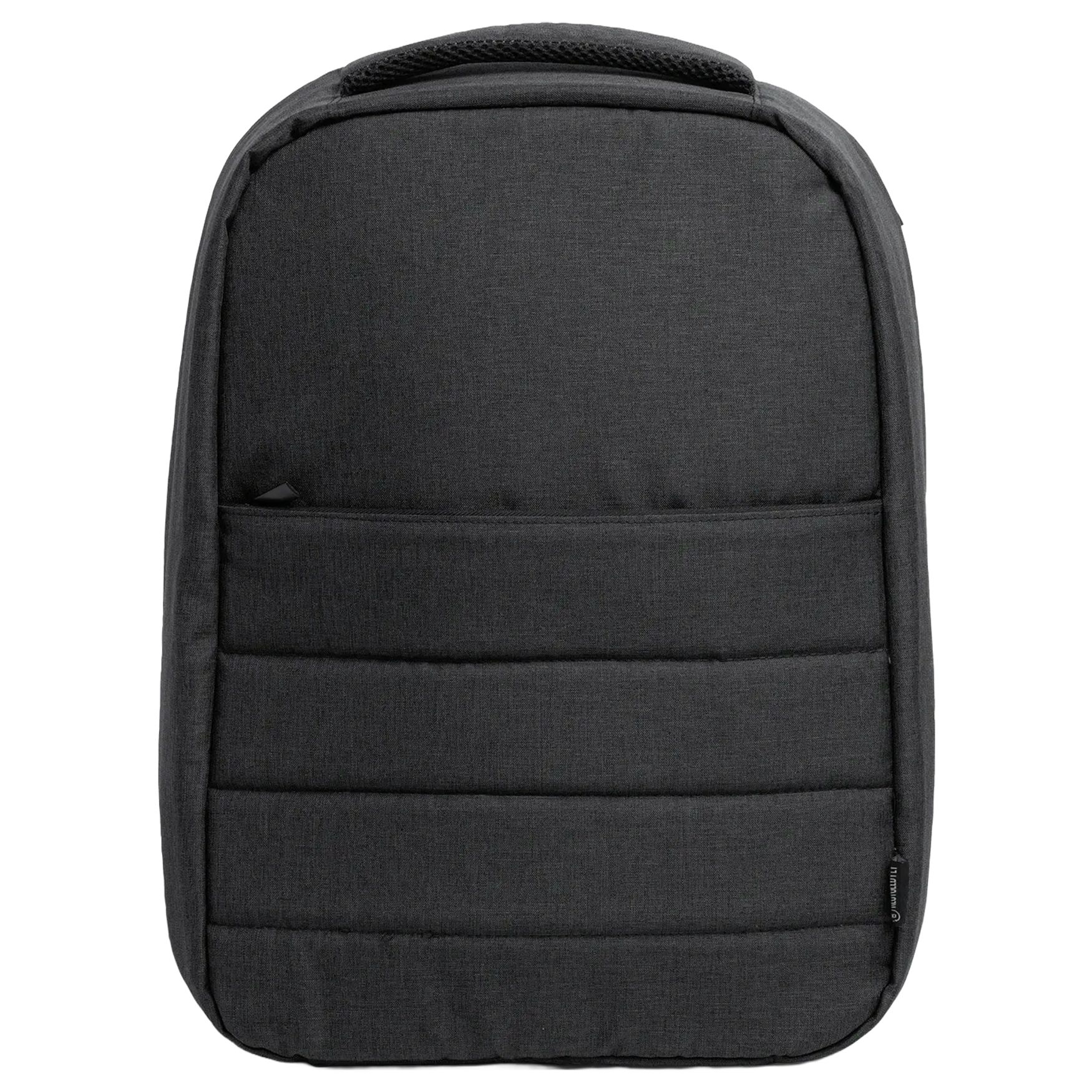 Le sac à dos RPET 300 D propose une structure avec deux compartiments rembourrés pour ordinateur portable et tablette jusqu'à 38 cm. Il comprend une poche avant rembourrée, une poche dans la poignée, une poche antivol à l'arrière et une sangle pour valise facilitant son transport.