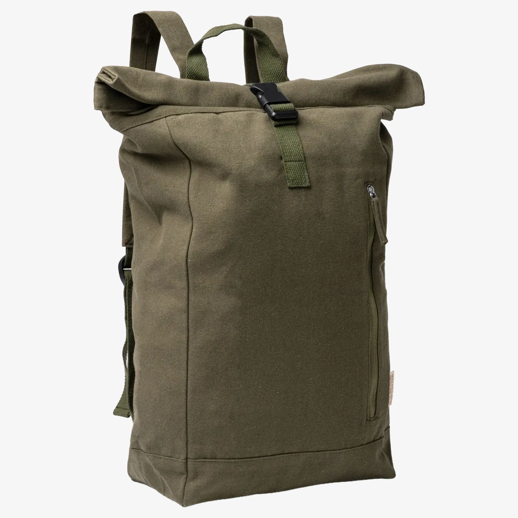 Le sac à dos en coton recyclé dispose d'un grand compartiment principal avec ouverture extensible et fermeture à glissière ajustable. Il comprend une poche avant avec fermeture à glissière ainsi qu'une poche latérale. Sa capacité est de 25 L.
