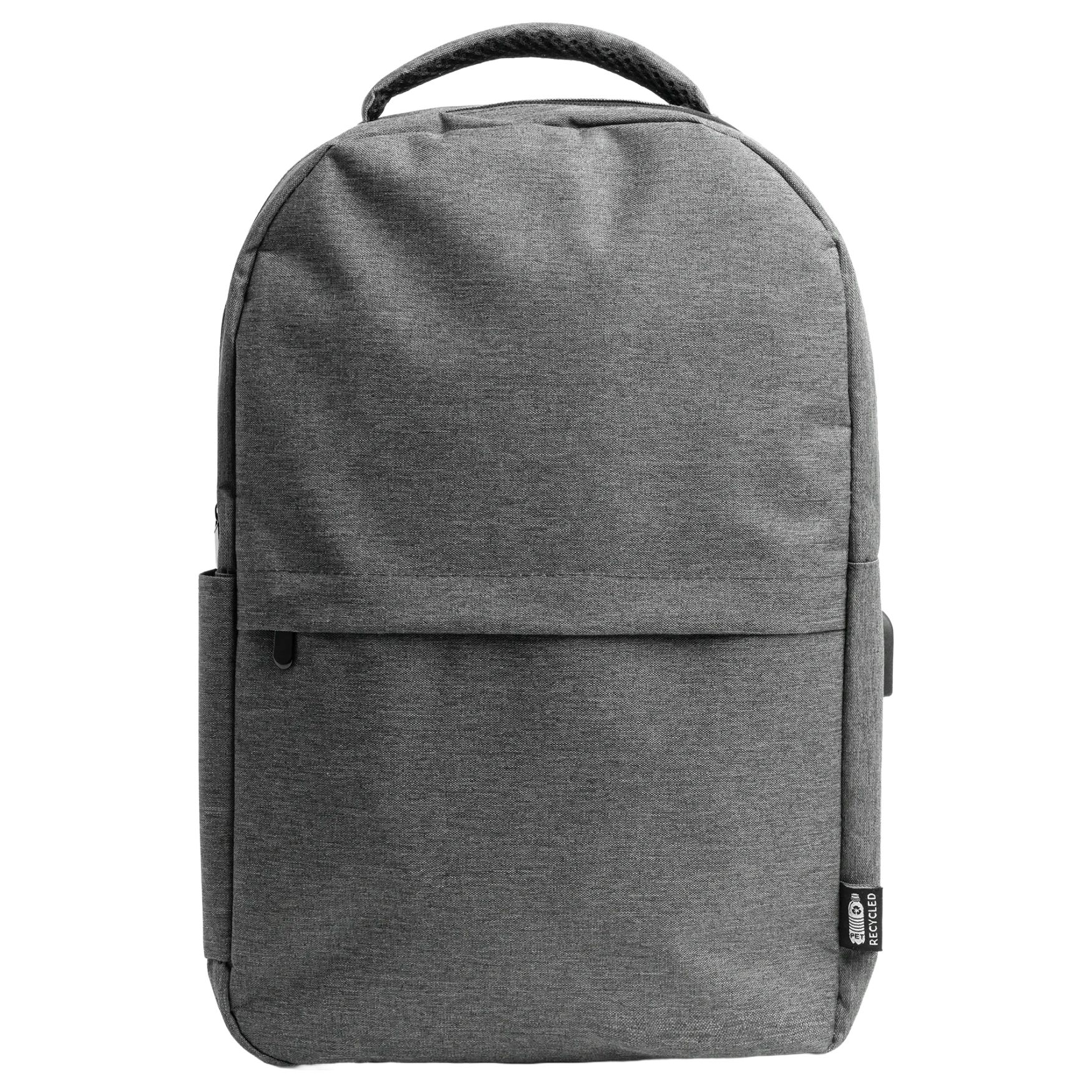 Le sac à dos en polyester RPET 600 D présente une finition chinée. Il comprend une poche principale rembourrée adaptée aux ordinateurs portables ou tablettes et un port USB intégré pour connexion à un bloc d'alimentation non fourni. Il dispose également de poches avant latérales et de bretelles dos rembourrées. La capacité est de 15 litres avec des dimensions de 29 x 43 x 13 cm. La composition principale est RPET.