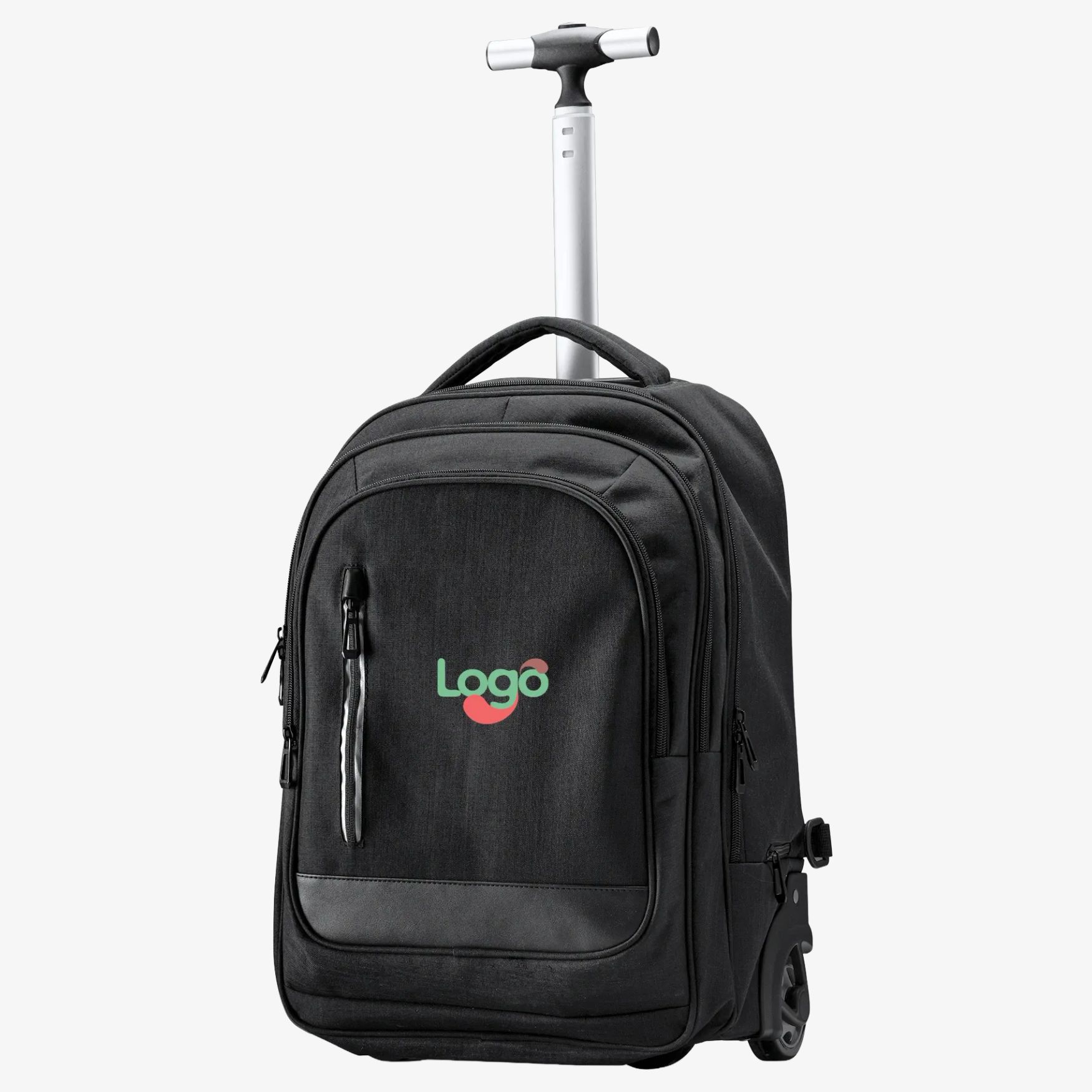 Le sac à dos GARNES est conçu en polyester chiné 300 D avec fonction trolley. Il comprend une poche principale spacieuse avec compartiment rembourré adapté aux ordinateurs portables jusqu'à 15". Deux poches avec compartiments intérieurs et une poche frontale complètent son organisation. Le cadre est de haute qualité et résistant, les bretelles sont ajustables et rembourrées. Le couvre-roues est conçu pour résister aux taches.