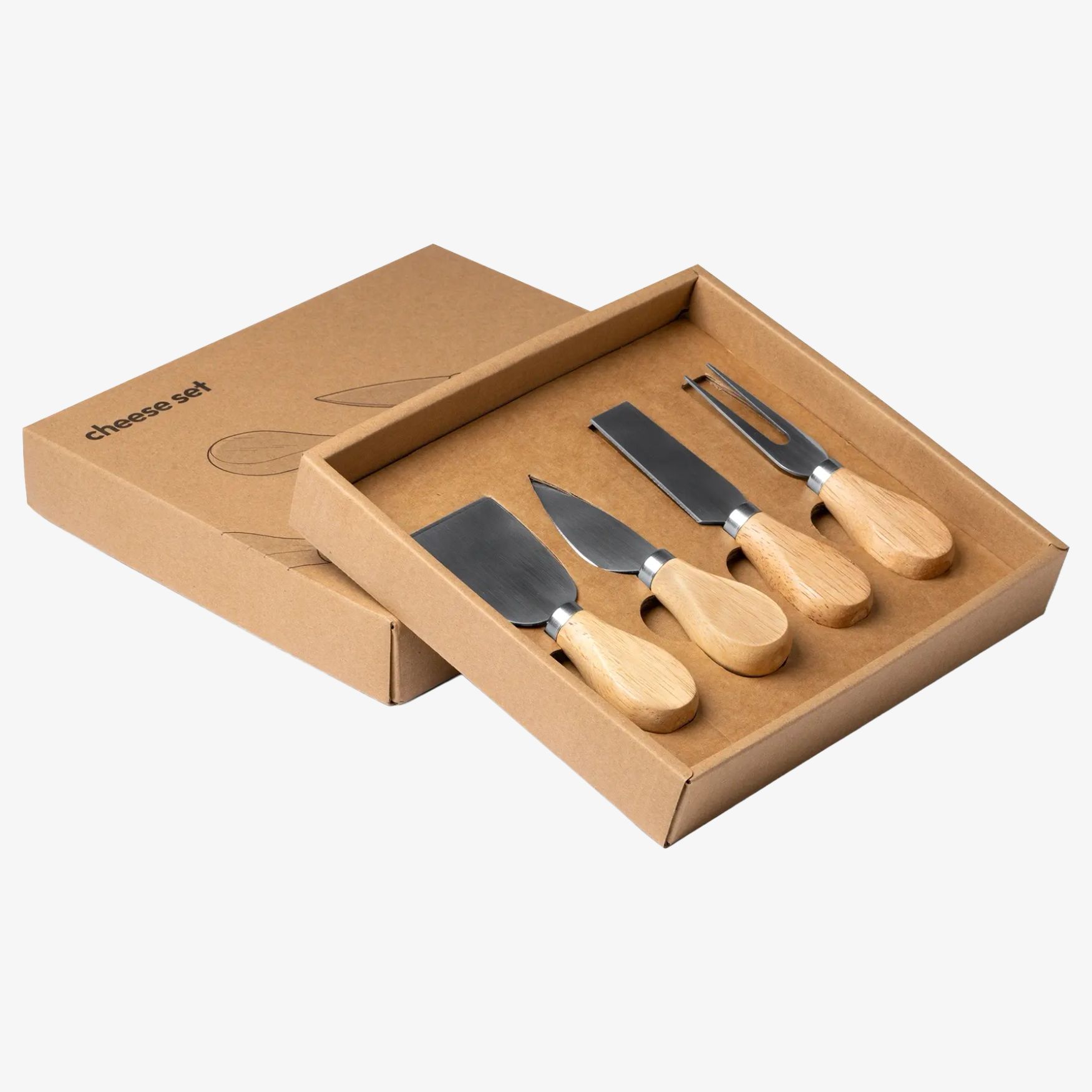 Le service à fromage EDAM comprend 4 ustensiles en acier inoxydable avec manche en bois. Livré dans un étui avec intérieur rembourré pour un rangement organisé.