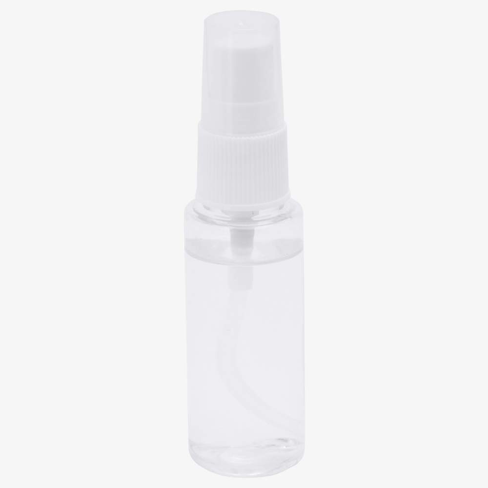 Bouteille de gel hydroalcoolique de 30 ml, conçue pour une utilisation portable. Sa forme ronde et transparente permet une visualisation facile du contenu restant. La bouteille est équipée d'un vaporisateur pour une application facile et contrôlée du gel hydroalcoolique. Une capuche blanche protège le vaporisateur et assure une fermeture sécurisée. Cet article est conçu pour répondre aux besoins d'hygiène personnelle en déplacement.