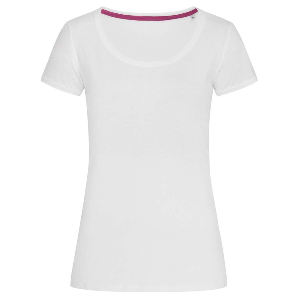 T-shirt tendance coupe un peu plus longue pour femmes avec encolure large en coton ring-spun peigné très doux. Coton peigné de haute qualité, coupe près du corps avec col à cotes fin, pas d'étiquette de marque dans le cou. Encolure ample, fin col côtelé, manches courtes modernes avec fine bande côtelée à la base, bande de propreté contrastée, coutures latérales, petite étiquette de taille dans le cou, étiquette d'entretien dans la couture latérale.